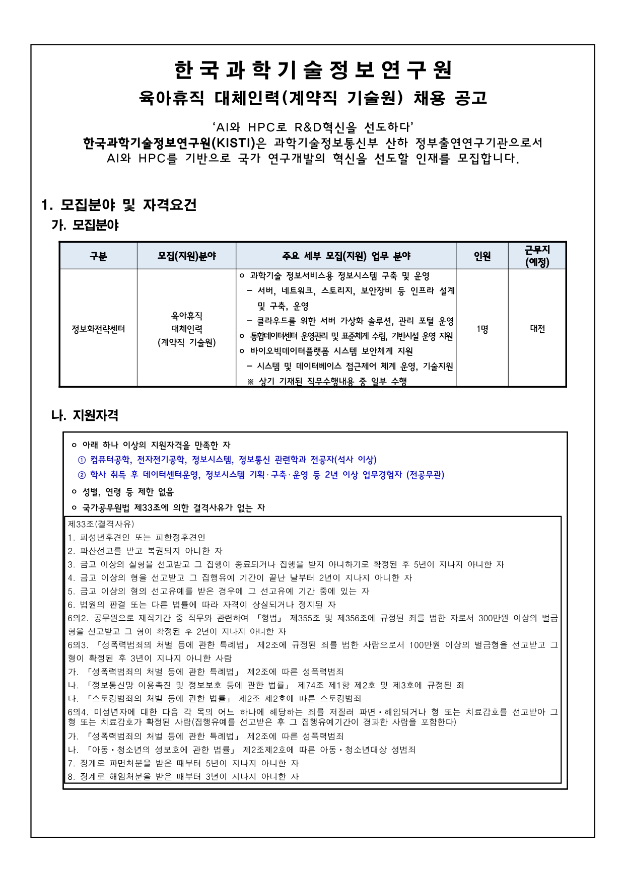 [Çѱ¹°úÇбâ¼úÁ¤º¸¿¬±¸¿ø] À°¾ÆÈÞÁ÷ ´ëüÀηÂ(°è¾àÁ÷ ±â¼ú¿ø) ä¿ë °ø°í
