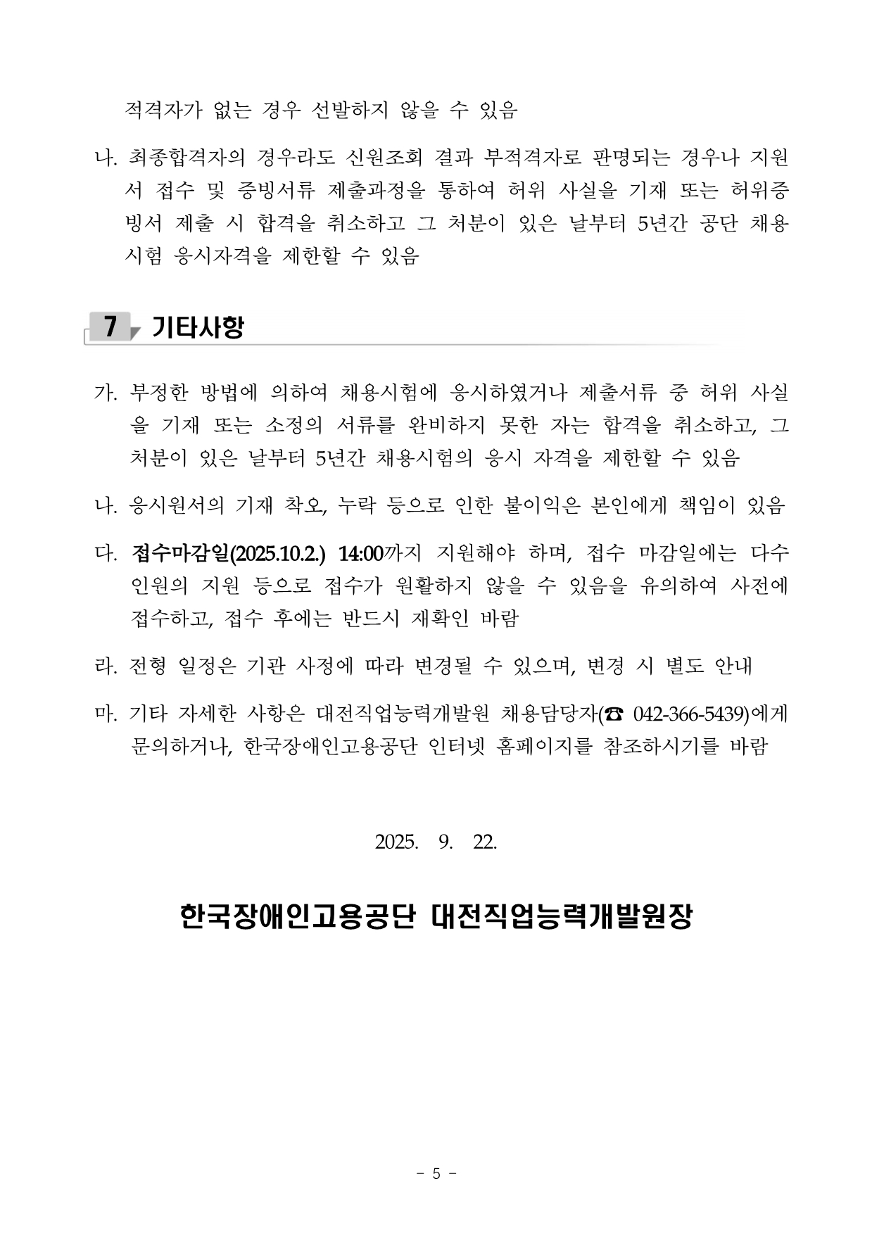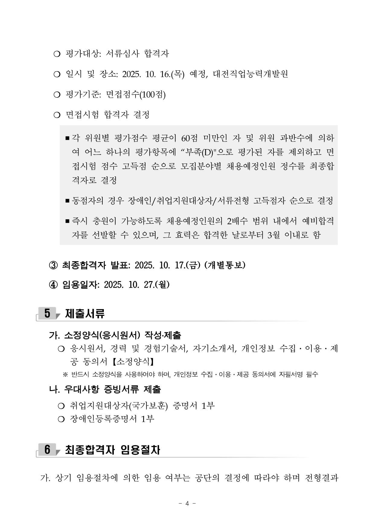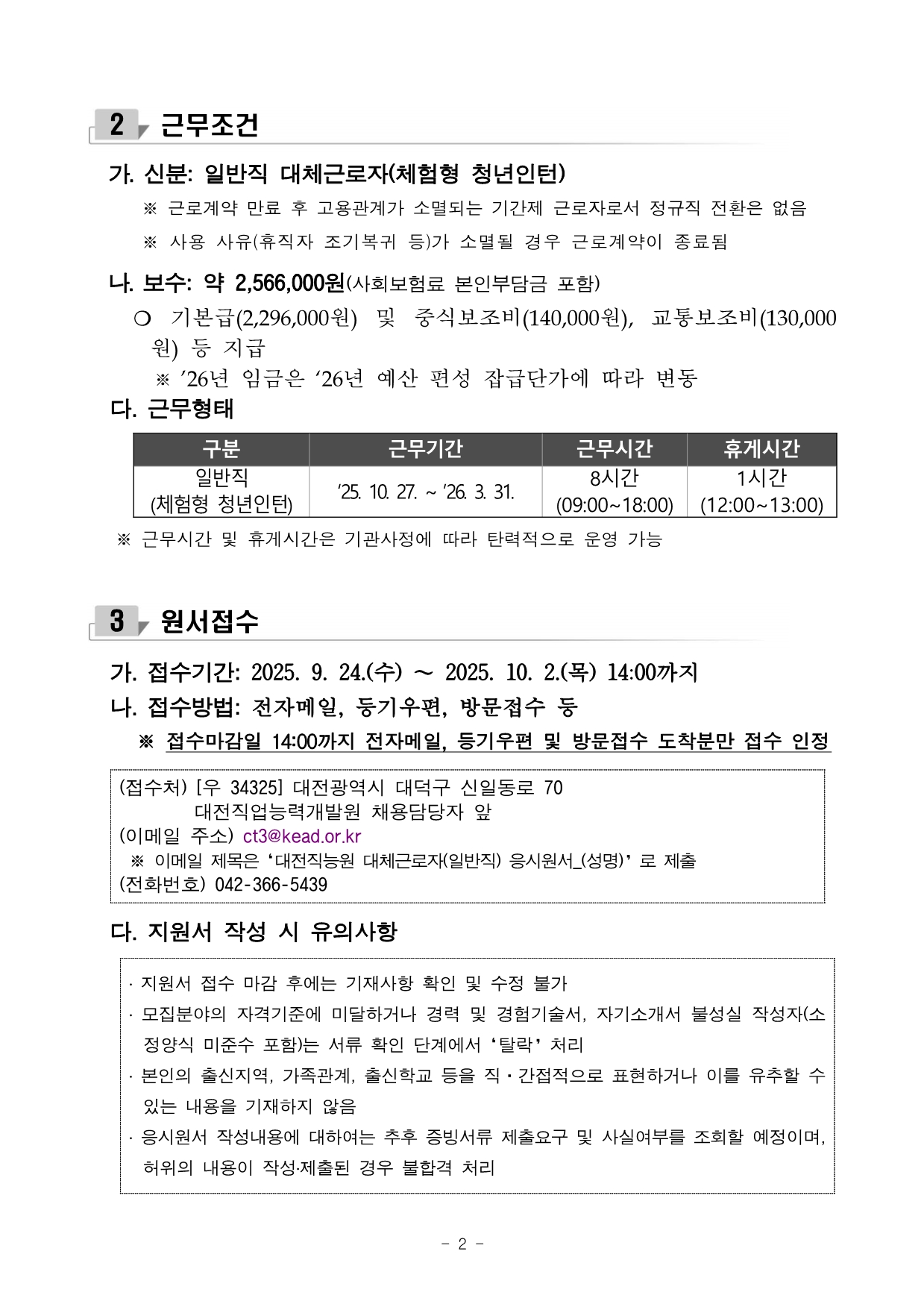 ÇÕ°Ý ÈÄ Ã¤¿ë ½Ã, Çѱ¹Àå¾ÖÀΰí¿ë°ø´Ü ´ëÀüÁ÷¾÷´É·Â°³¹ß¿ø ¼Ò¼ÓÀ¸·Î ±Ù¹«ÇÏ°Ô µË´Ï´Ù.