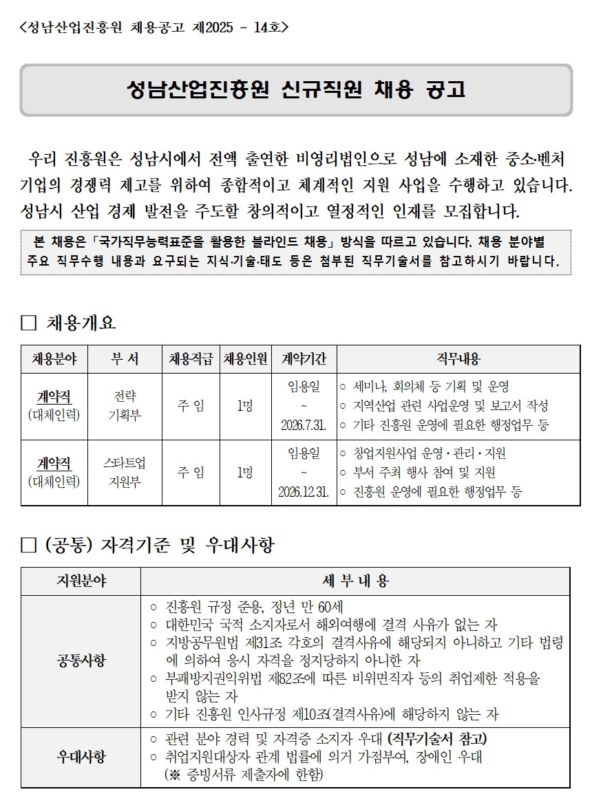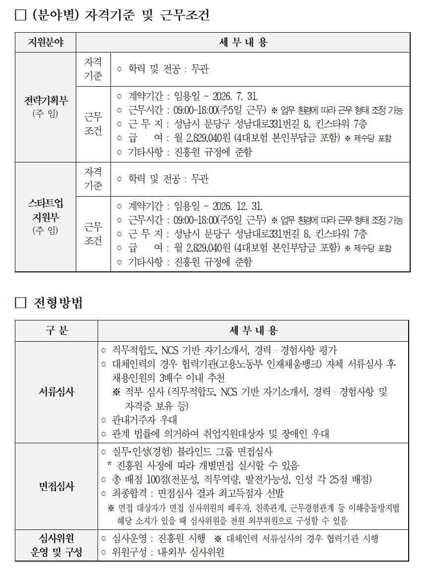 [ ¼º³²»ê¾÷ÁøÈï¿ø ] ½Å±ÔÁ÷¿ø ä¿ë °ø°í(ÈÞÁ÷´ëü/Àü·«±âȹºÎ, ½ºÅ¸Æ®¾÷Áö¿øºÎ ÁÖÀÓ)
