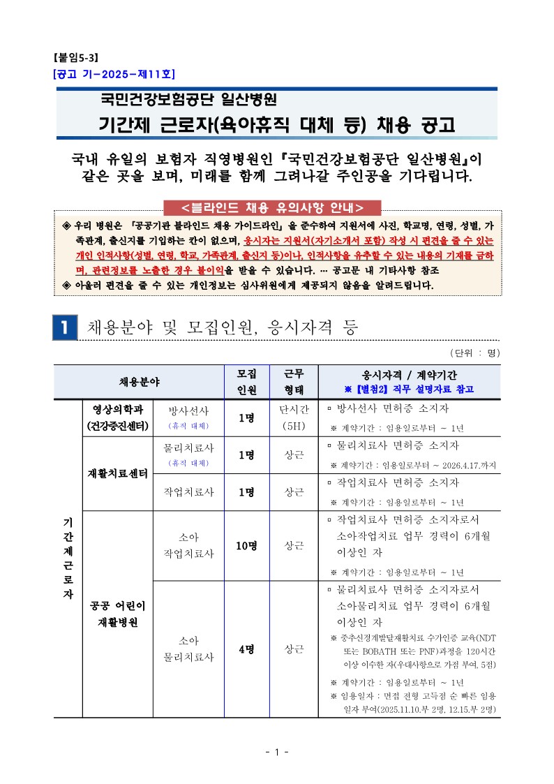 • ÇÕ°Ý ÈÄ Ã¤¿ë½Ã, [±¹¹Î°Ç°­º¸Çè°ø´Ü Àϻ꺴¿ø] ¼Ò¼ÓÀ¸·Î ±Ù¹«ÇÏ°Ô µË´Ï´Ù.