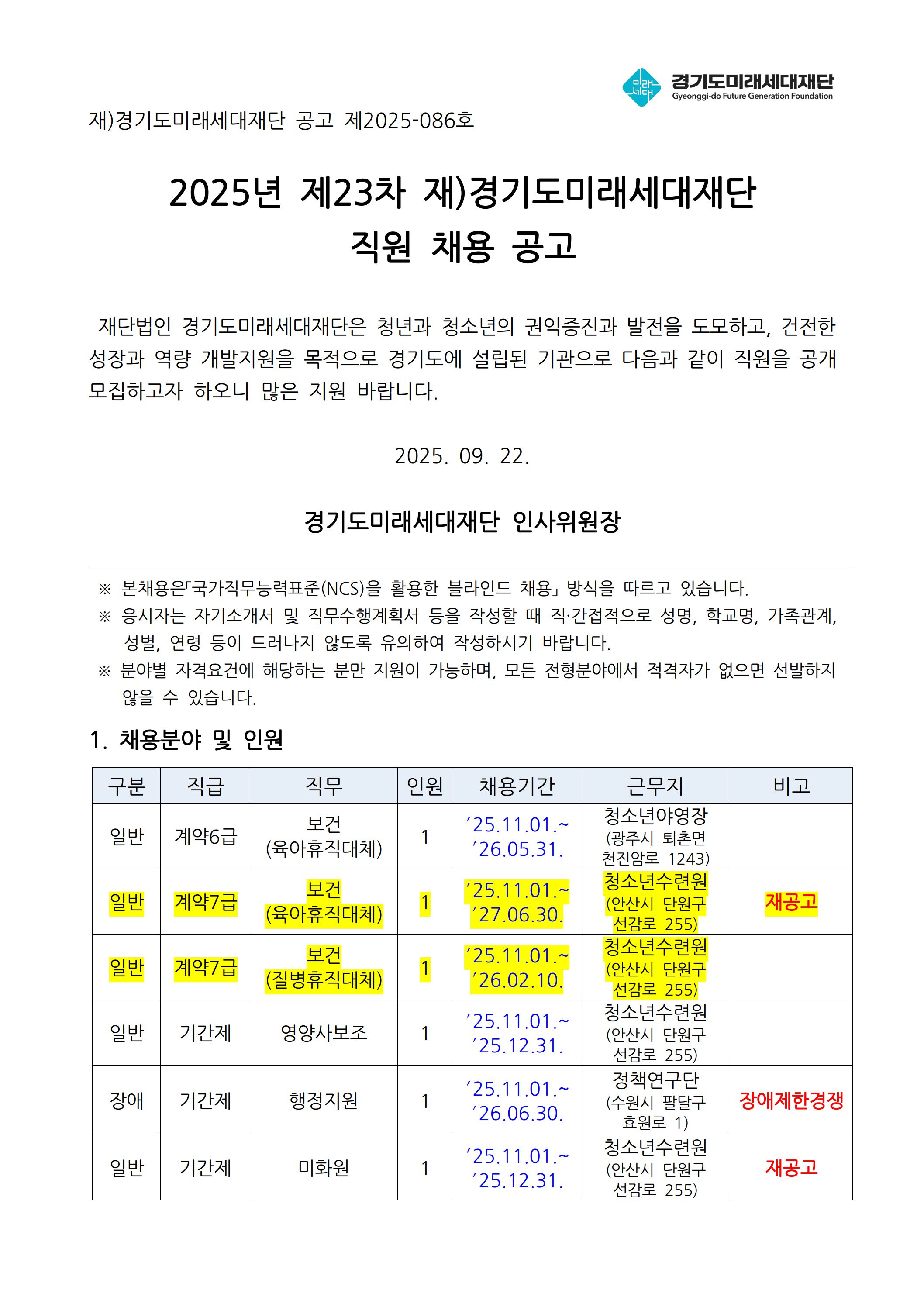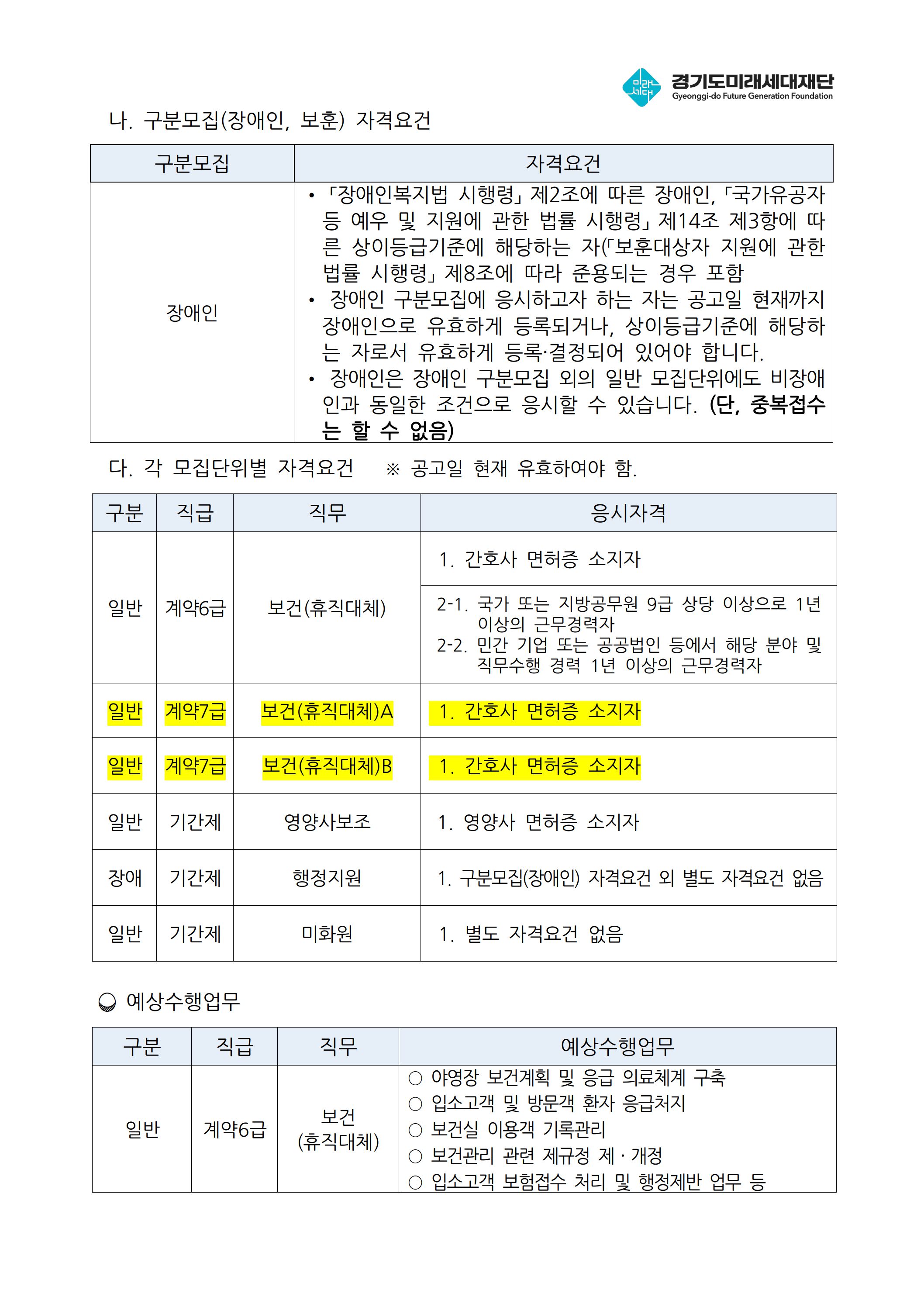 {Àç)°æ±âµµ¹Ì·¡¼¼´ëÀç´Ü °æ±â ¾È»ê °£È£»ç2¸í ÈÞÁ÷´ëü ä¿ë°ø°í 10/02(¸ñ) 17½Ã