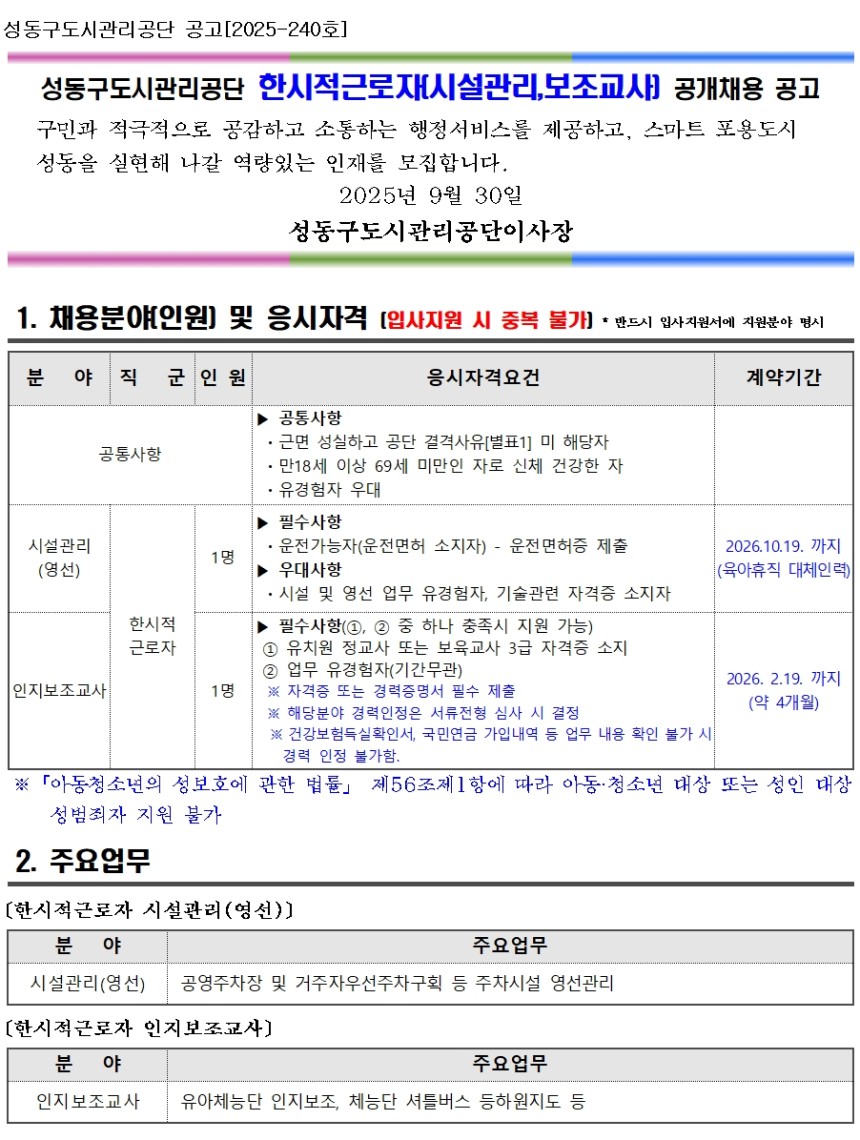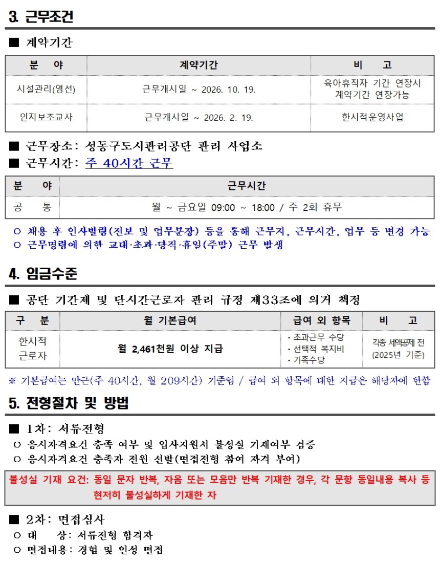 [¼­¿ïƯº°½Ã ¼ºµ¿±¸µµ½Ã°ü¸®°ø´Ü] ÇѽÃÀû±Ù·ÎÀÚ(¿µ¼±(½Ã¼³°ü¸®),º¸Á¶±³»ç) °ø°³Ã¤¿ë °ø°í/ÈÞÁ÷´ëü