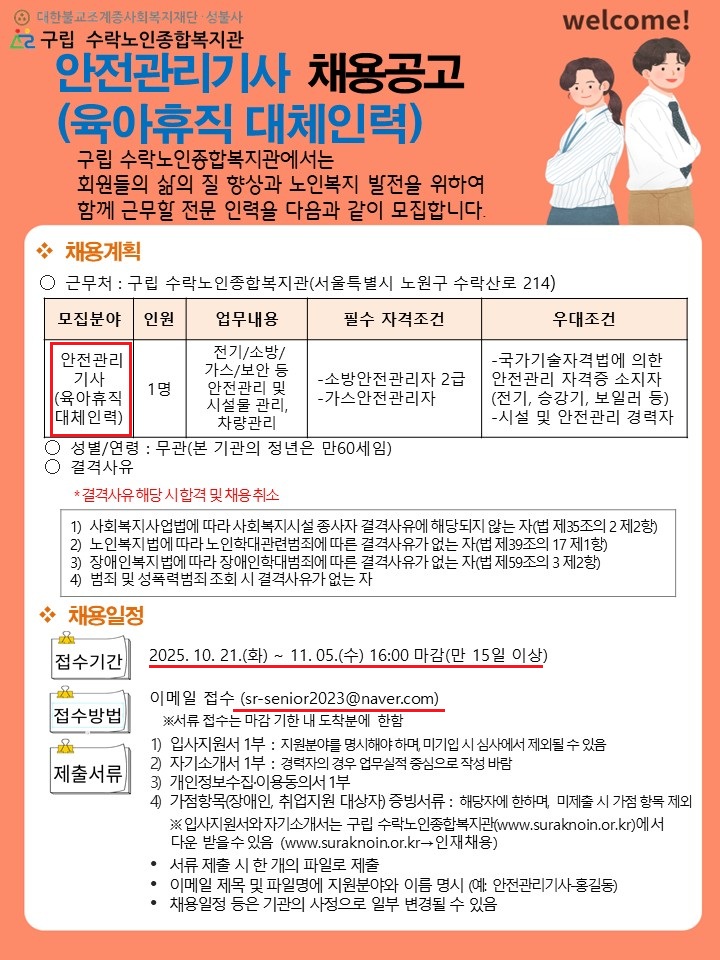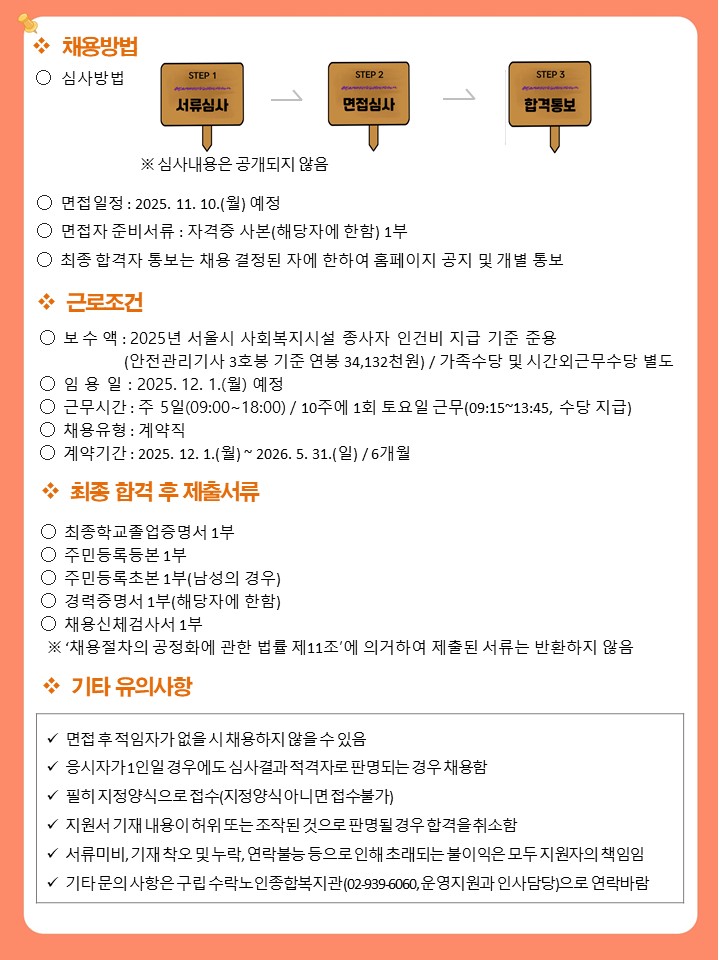 ÇÕ°Ý ÈÄ Ã¤¿ë½Ã, '±¸¸³ ¼ö¶ô³ëÀÎÁ¾ÇÕº¹Áö°ü' ¼Ò¼ÓÀ¸·Î ±Ù¹«ÇÏ°Ô µË´Ï´Ù.