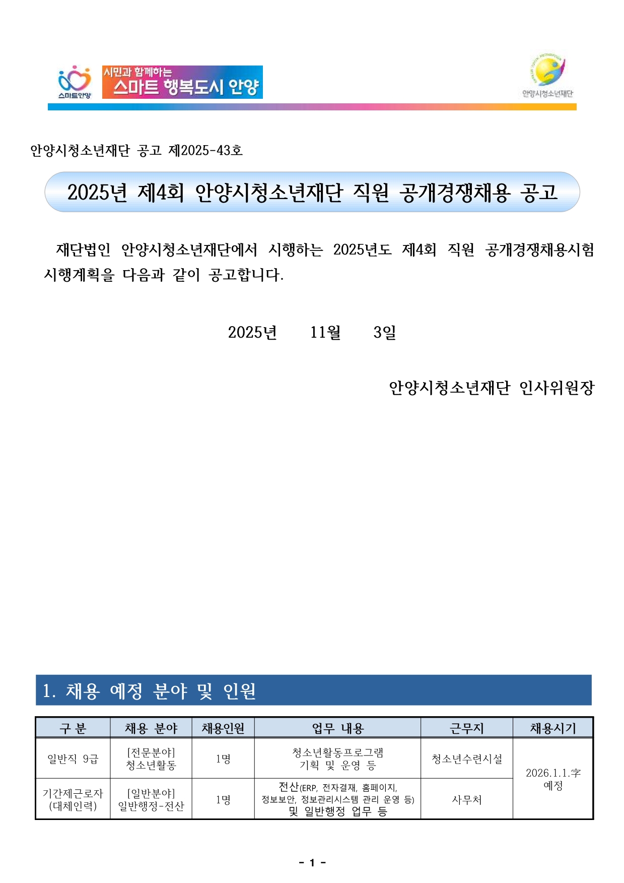 ÇÕ°Ý ÈÄ Ã¤¿ë ½Ã, ¾È¾ç½Ãû¼Ò³âÀç´Ü ¼Ò¼ÓÀ¸·Î ±Ù¹«ÇÏ°Ô µË´Ï´Ù.