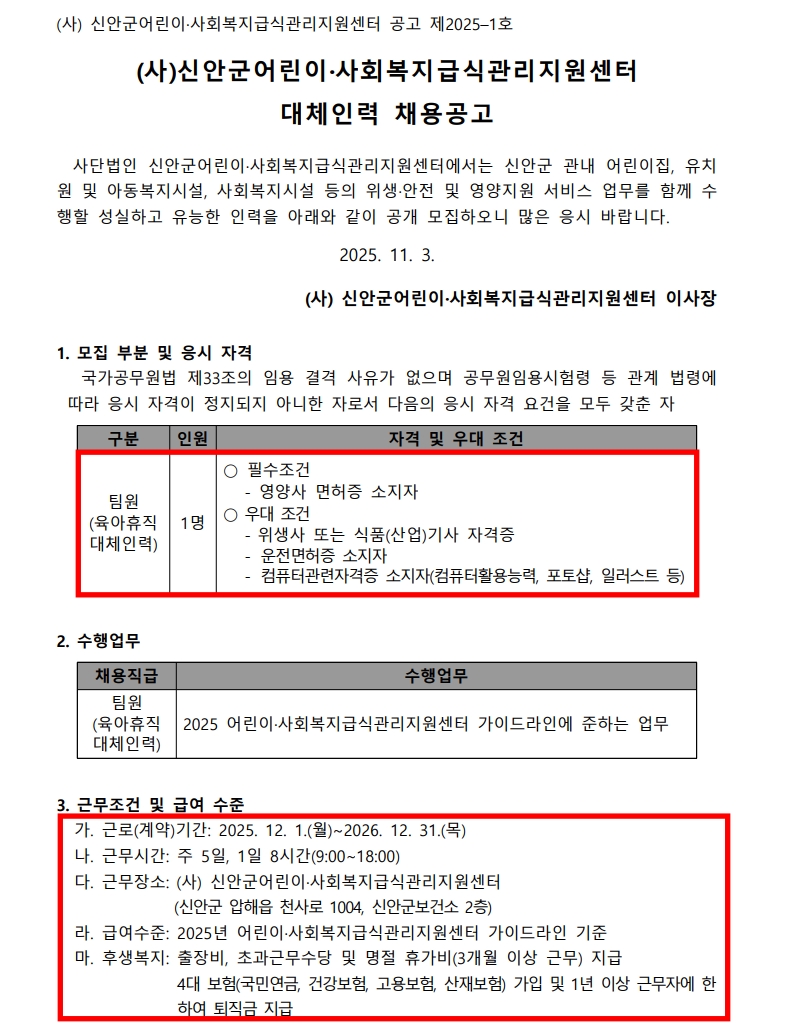 ¡ß ÀÔ»ç ÈÄ¿¡´Â (»ç)½Å¾È±º¾î¸°À̱޽İü¸®Áö¿ø¼¾ÅÍ¿¡¼ ±Ù¹« ¿¹Á¤ÀÔ´Ï´Ù.(Àü¶ó³²µµ ½Å¾È±º ¾ÐÇØÀ¾ õ»ç·Î 1004, ½Å¾È±ºº¸°Ç¼Ò 2Ãþ)