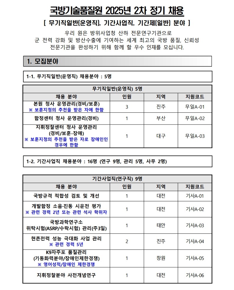 [±¹¹æ±â¼úǰÁú¿ø] 2025³â 2Â÷ Á¤±âä¿ë(¹«±âÁ÷ÀϹÝ(¿î¿µÁ÷), ±â°£»ç¾÷Á÷, ±â°£Á¦(ÀϹÝ) ºÐ¾ß