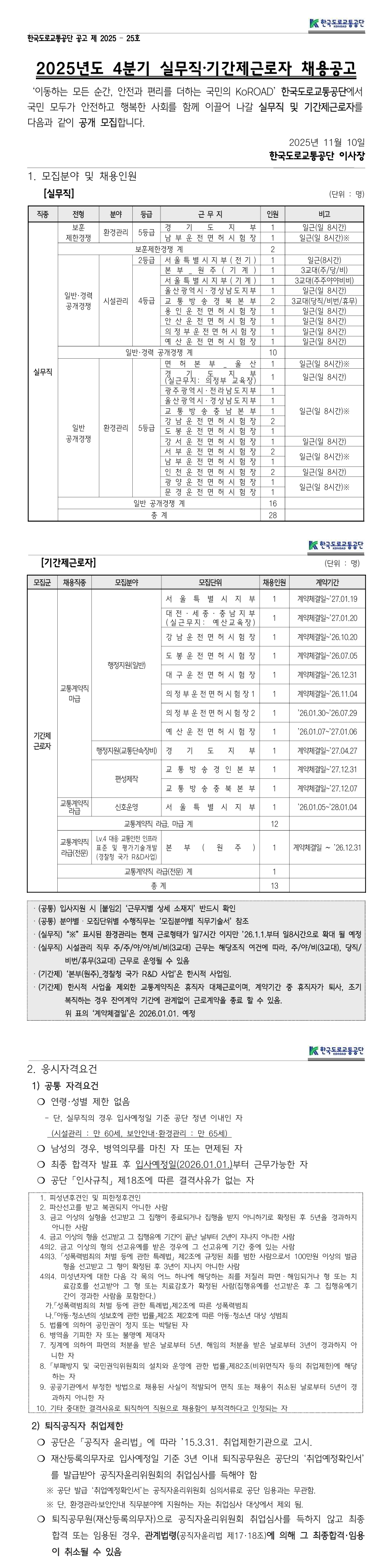 [Çѱ¹µµ·Î±³Åë°ø´Ü] 2025³âµµ 4ºÐ±â ½Ç¹«Á÷¡¤±â°£Á¦±Ù·ÎÀÚ Ã¤¿ë°ø°í