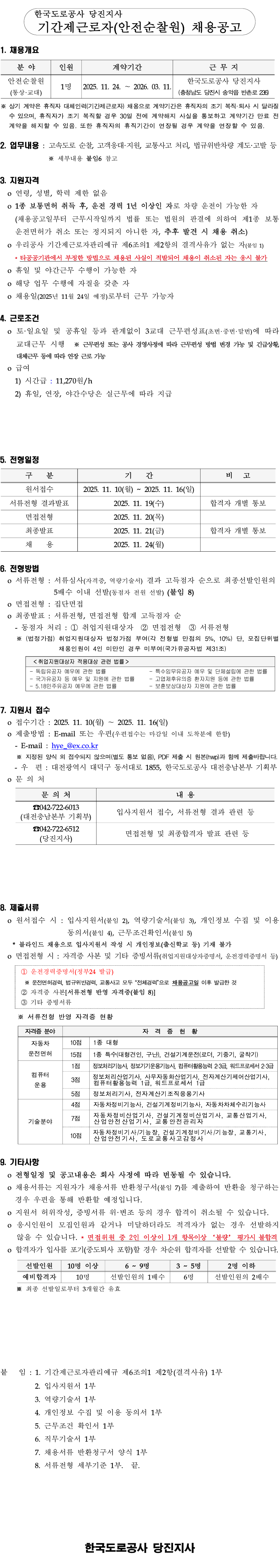 Çѱ¹µµ·Î°ø»ç ´çÁøÁö»ç ±â°£Á¦±Ù·ÎÀÚ(¾ÈÀü¼øÂû¿ø)ä¿ë°ø°í