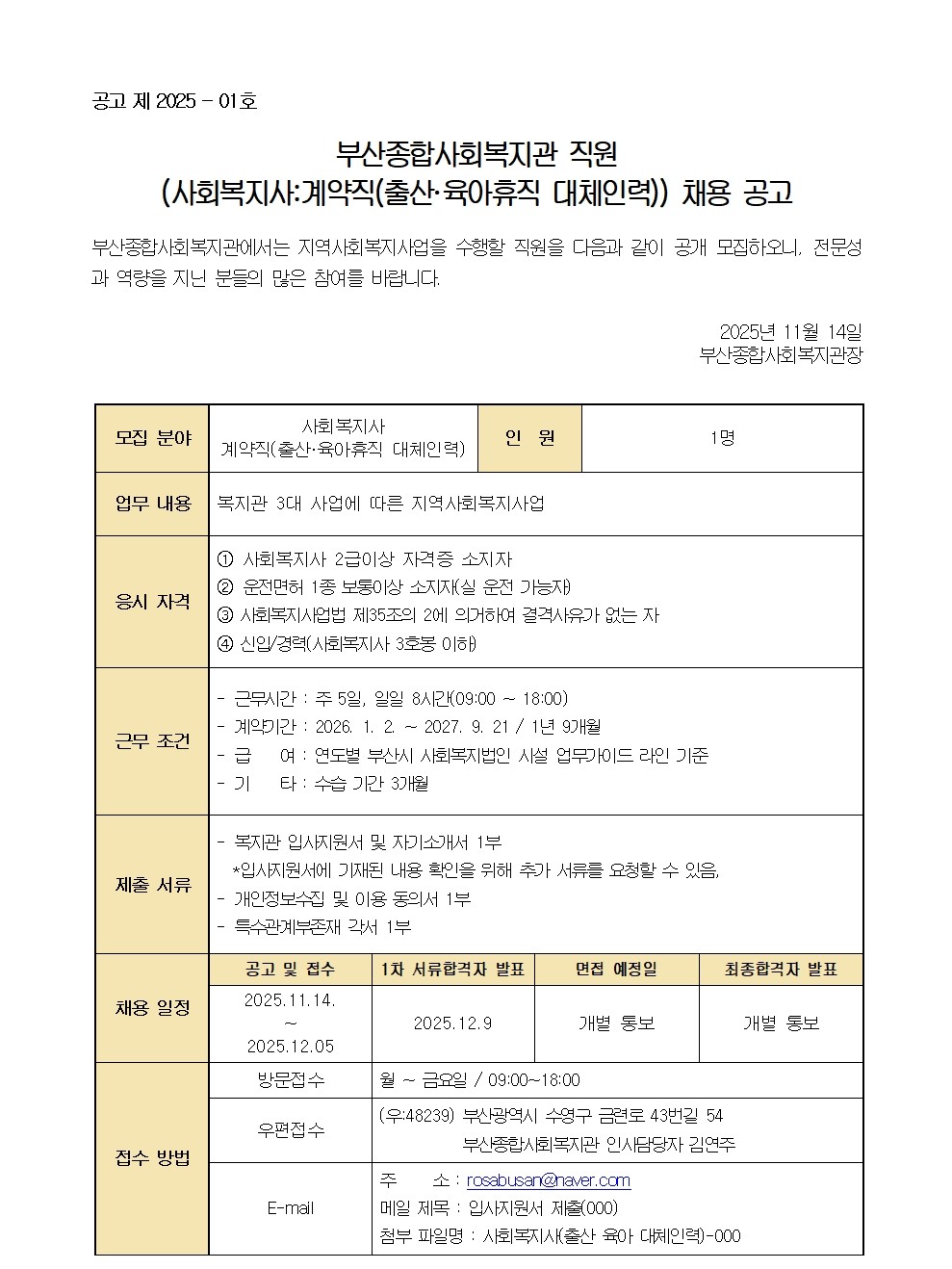 [ºÎ»êÁ¾ÇÕ»çȸº¹Áö°ü](»çȸº¹Áö»ç)Ãâ»êÀ°¾ÆÈÞÁ÷´ëü ä¿ë °ø°í