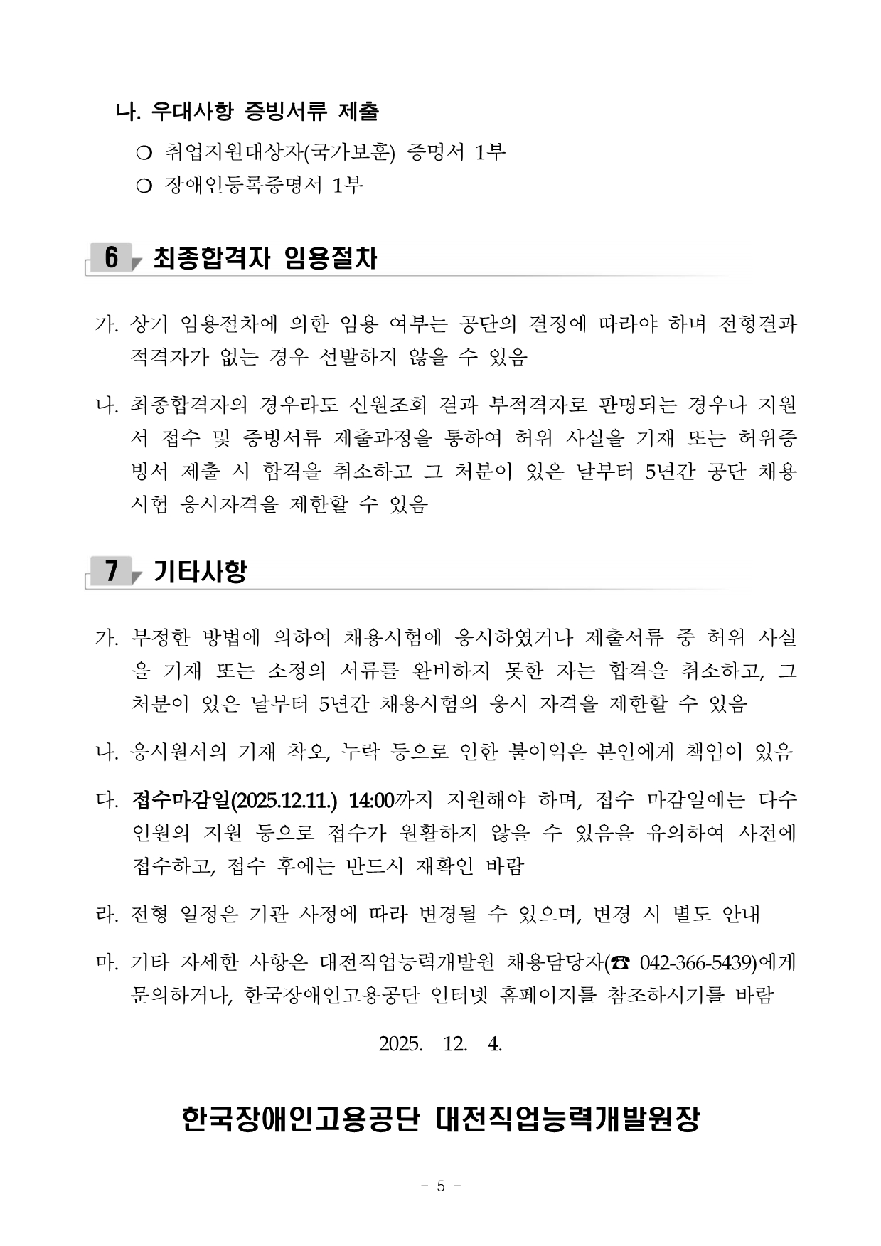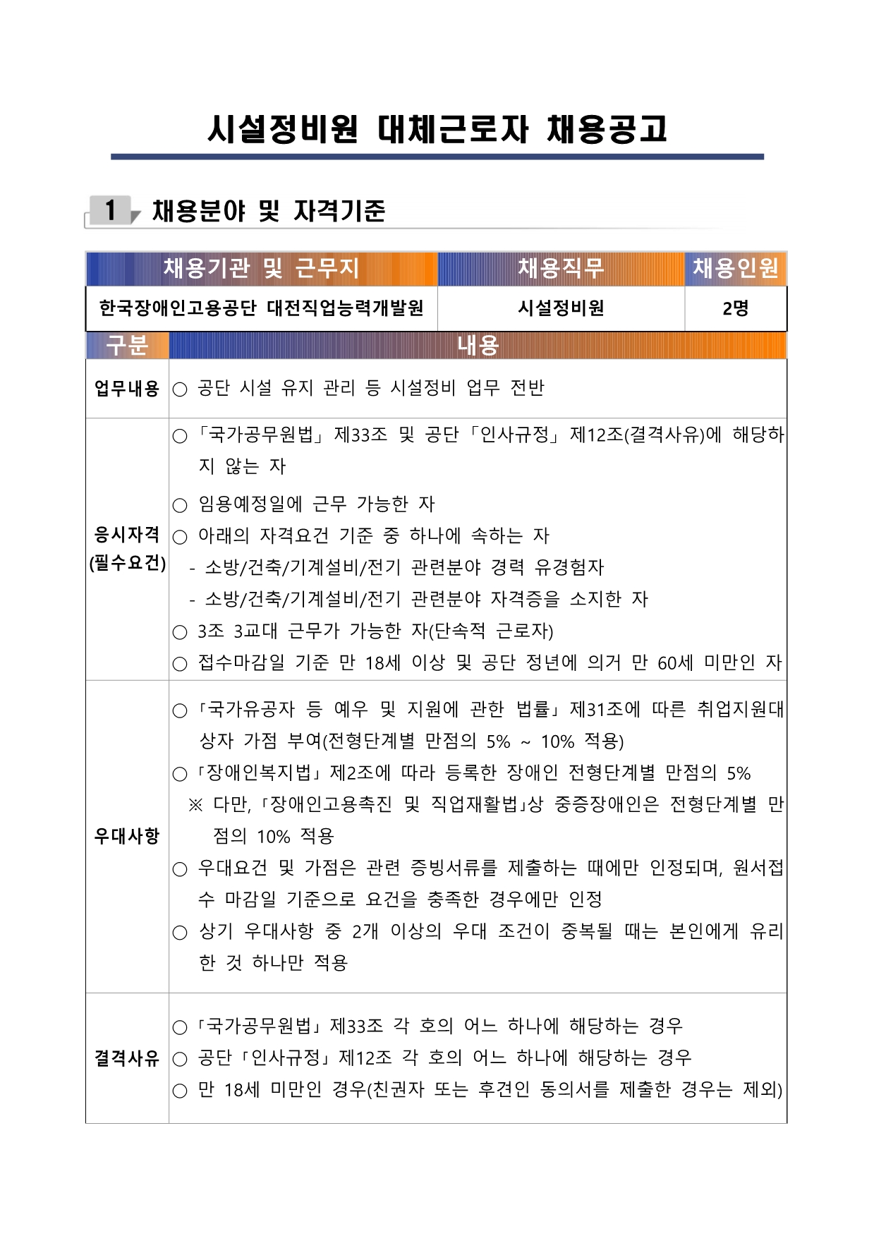 ÇÕ°Ý ÈÄ Ã¤¿ë ½Ã, Çѱ¹Àå¾ÖÀΰí¿ë°ø´Ü ´ëÀüÁ÷¾÷´É·Â°³¹ß¿ø ¼Ò¼ÓÀ¸·Î ±Ù¹«ÇÏ°Ô µË´Ï´Ù.