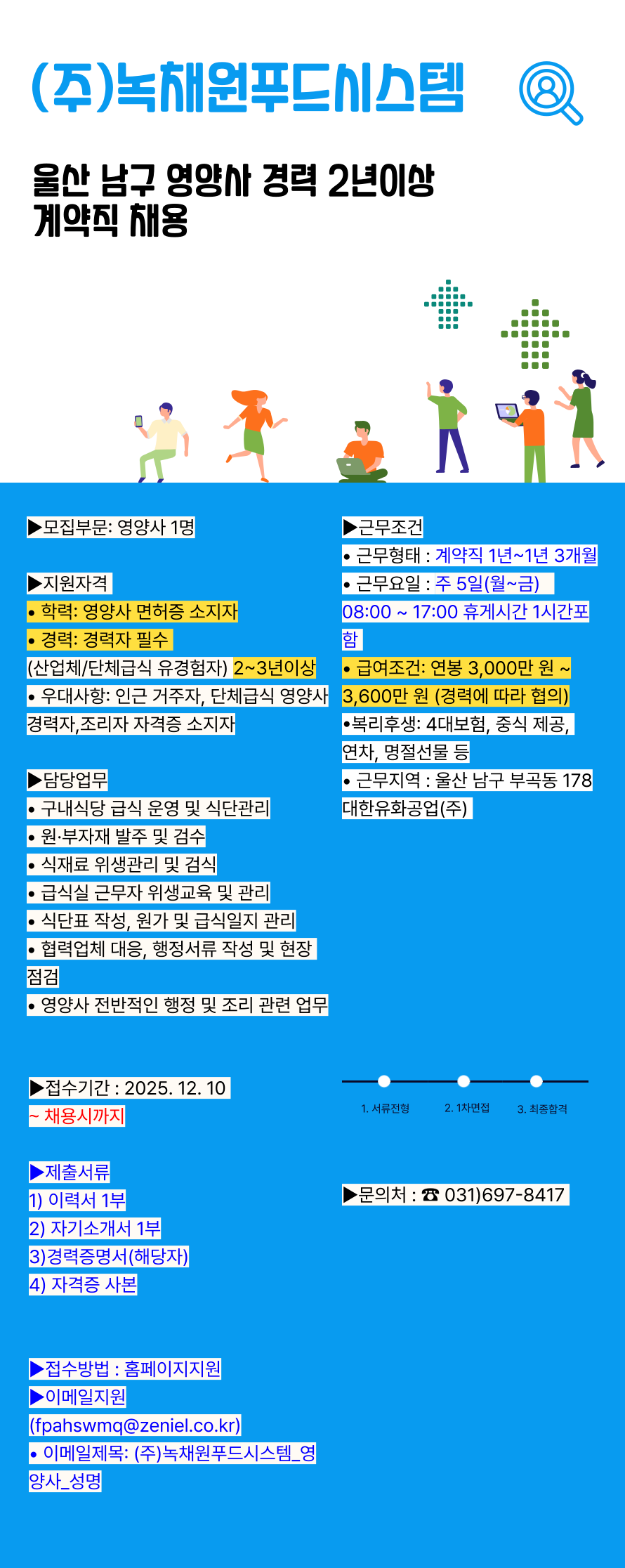 [(ÁÖ)³ìä¿øÇªµå½Ã½ºÅÛ] ¿ï»ê ³²±¸ ¿µ¾ç»ç °æ·Â 2³âÀÌ»ó °è¾àÁ÷ ä¿ë(ÈÞÁ÷´ëü)