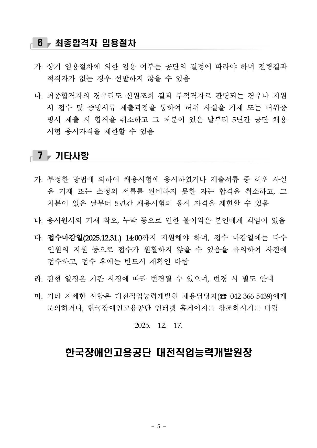 ÇÕ°Ý ÈÄ Ã¤¿ë ½Ã, Çѱ¹Àå¾ÖÀΰí¿ë°ø´Ü ´ëÀüÁ÷¾÷´É·Â°³¹ß¿ø ¼Ò¼ÓÀ¸·Î ±Ù¹«ÇÏ°Ô µË´Ï´Ù.