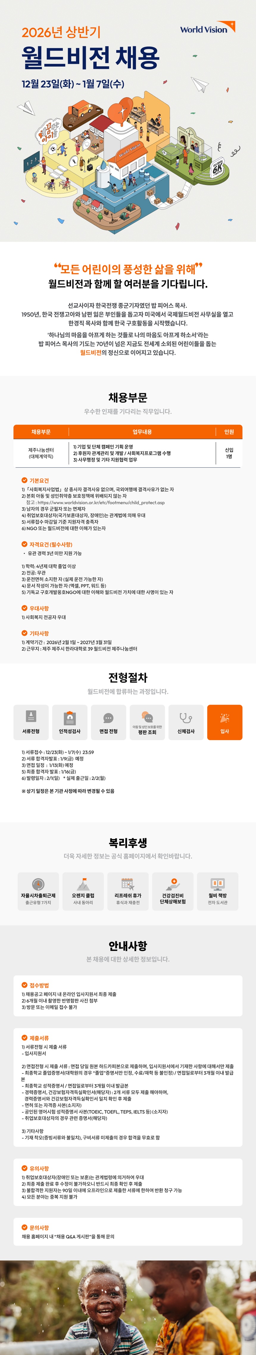 ÇÕ°Ý ÈÄ Ã¤¿ë½Ã, '[World Vision]' ¼Ò¼Ó °è¾àÁ÷À¸·Î ±Ù¹«ÇÏ°Ô µË´Ï´Ù.