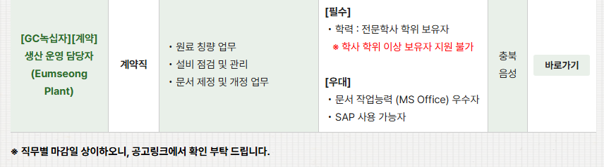 ÇÕ°Ý ÈÄ Ã¤¿ë ½Ã, GC³ì½ÊÀÚ ¼Ò¼ÓÀ¸·Î ±Ù¹«ÇÏ°Ô µË´Ï´Ù.