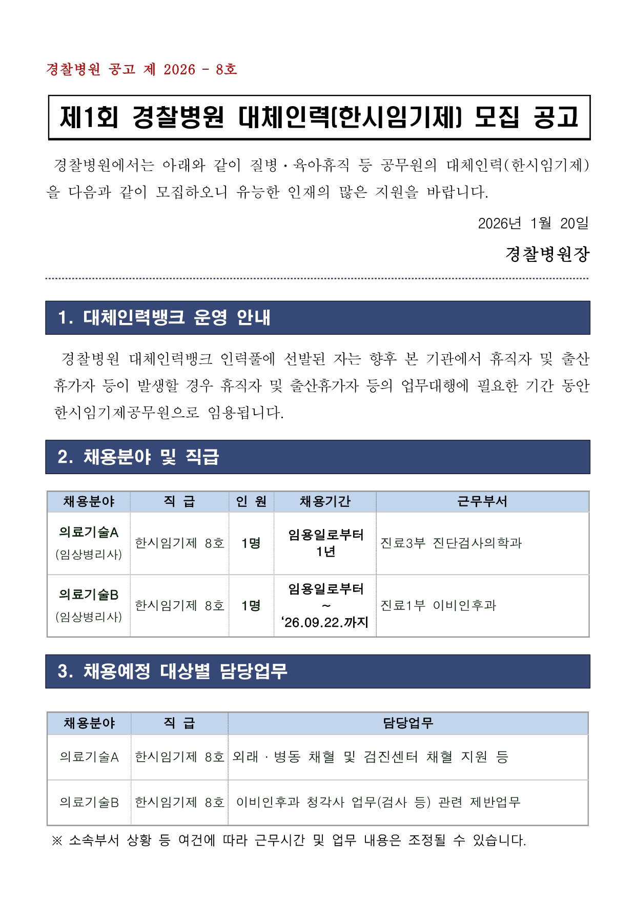 ÇÕ°Ý ÈÄ Ã¤¿ë ½Ã, °æÂûº´¿ø ¼Ò¼Ó °è¾àÁ÷À¸·Î ±Ù¹«ÇÏ°Ô µË´Ï´Ù.