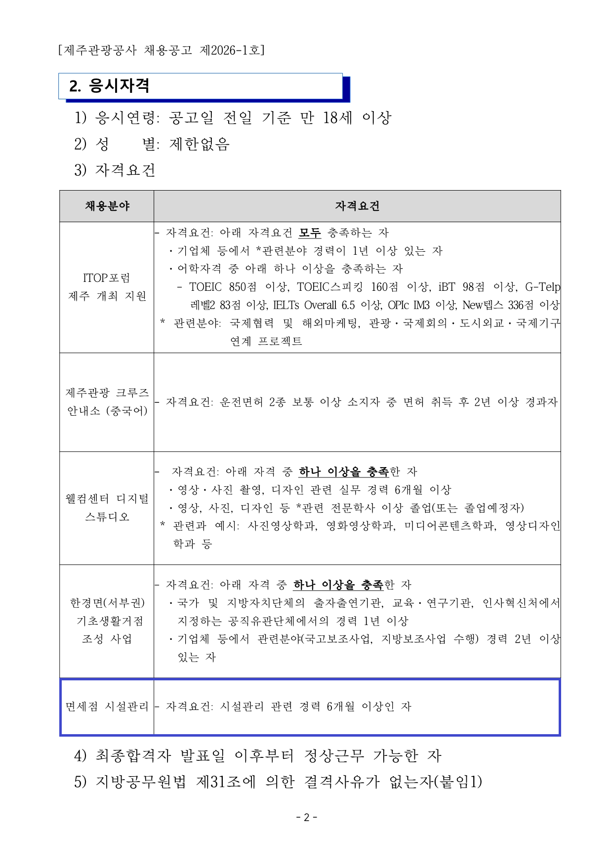 ÇÕ°Ý ÈÄ Ã¤¿ë ½Ã, Á¦ÁÖ°ü±¤°ø»ç ¼Ò¼Ó °è¾àÁ÷À¸·Î ±Ù¹«ÇÏ°Ô µË´Ï´Ù.