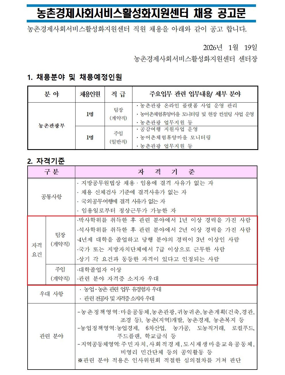 ÇÕ°Ý ÈÄ Ã¤¿ë ½Ã, '(»ç)Áö¿ªÈ°·Â¼¾ÅÍ' ¼Ò¼ÓÀ¸·Î ±Ù¹«ÇÏ°Ô µË´Ï´Ù.