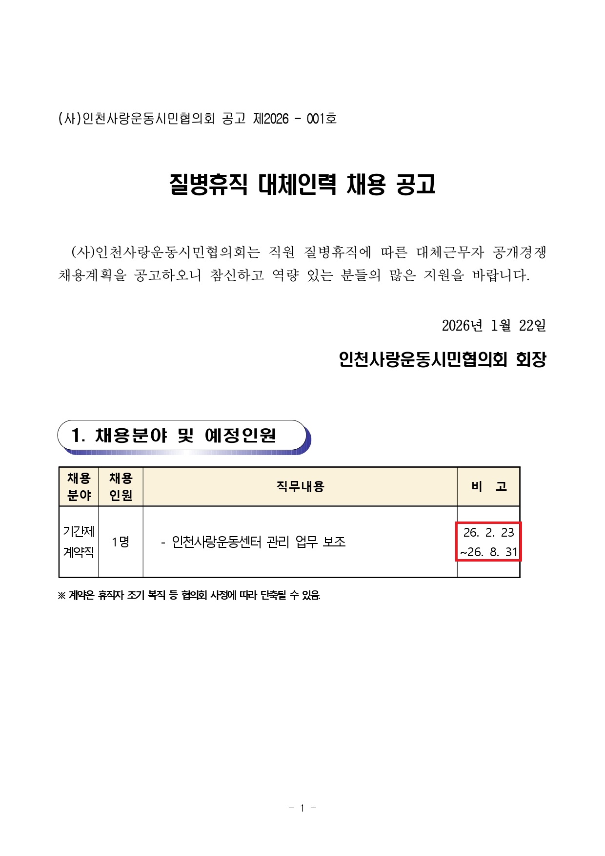 [(»ç)ÀÎõ»ç¶û¿îµ¿½Ã¹ÎÇùÀÇȸ] »ç¹«Ã³ °è¾àÁ÷ Á÷¿ø ä¿ë °ø°í