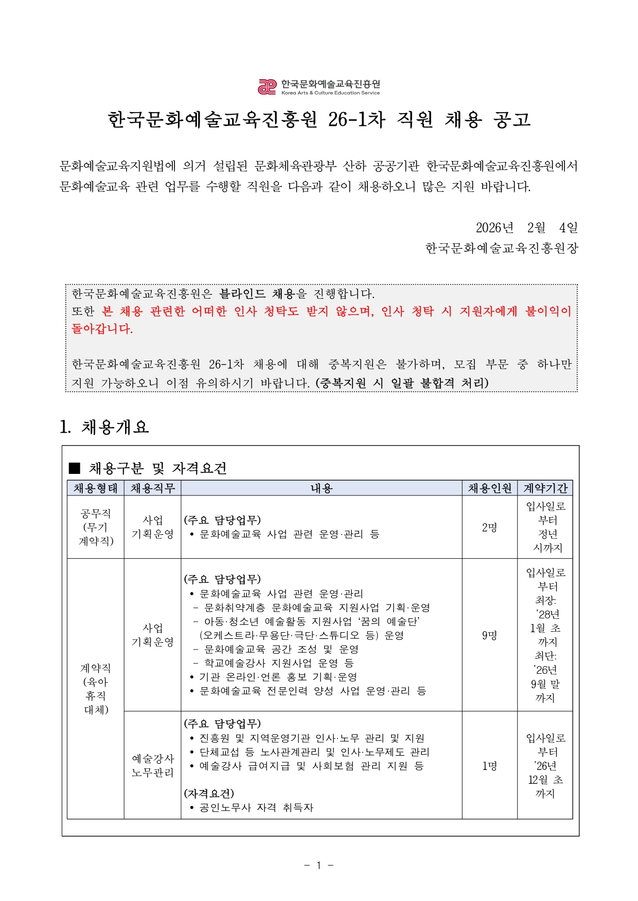[Çѱ¹¹®È­¿¹¼ú±³À°ÁøÈï¿ø] 26-1Â÷ Á÷¿ø ä¿ë °ø°í