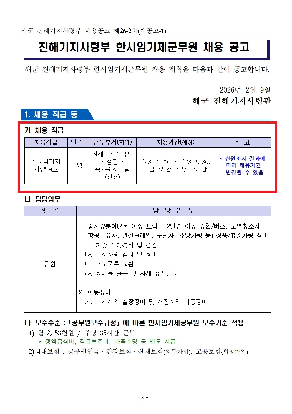 [ÇØ±ºÁøÇرâÁö»ç·ÉºÎ] Â÷·® 9È£ ÇѽÃÀÓ±âÁ¦±º¹«¿ø ä¿ë°ø°í