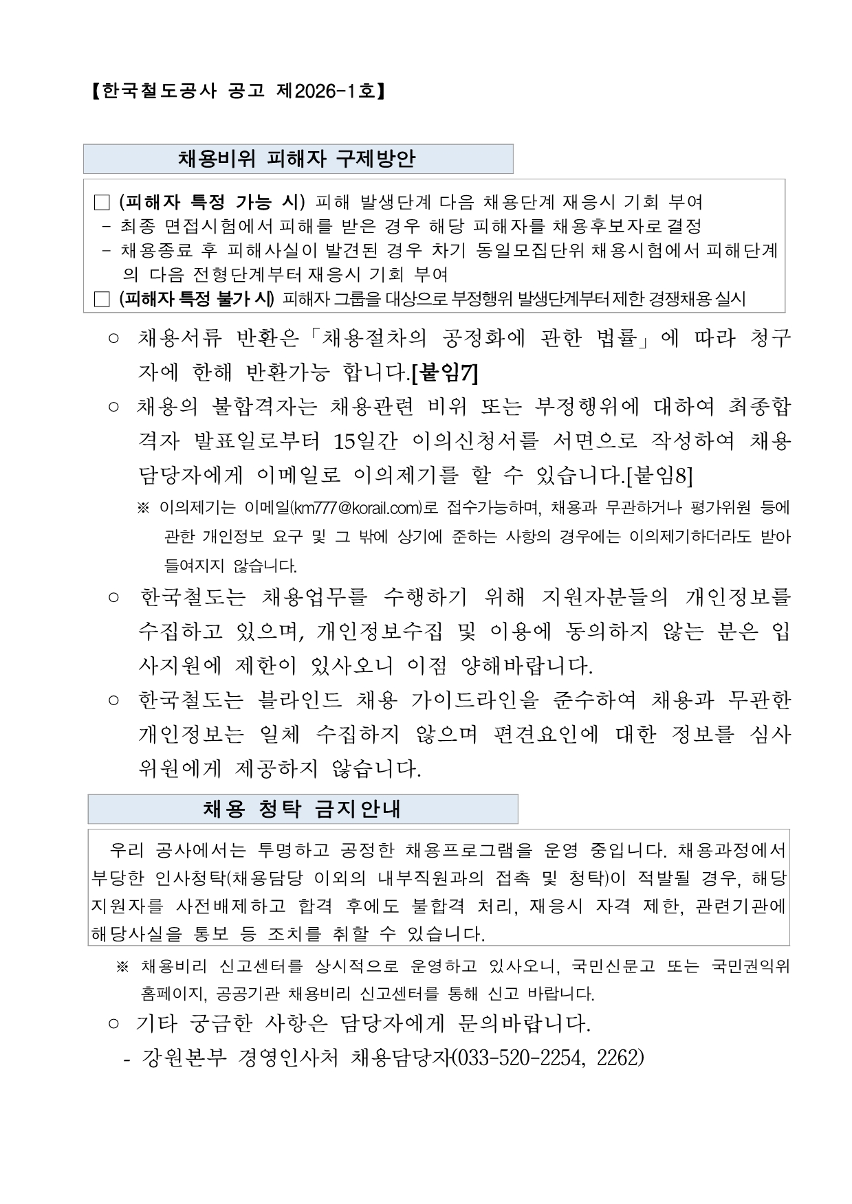 ÇÕ°Ý ÈÄ Ã¤¿ë ½Ã, Çѱ¹Ã¶µµ°ø»ç °­¿øº»ºÎ ¼Ò¼Ó °è¾àÁ÷À¸·Î ±Ù¹«ÇÏ°Ô µË´Ï´Ù.