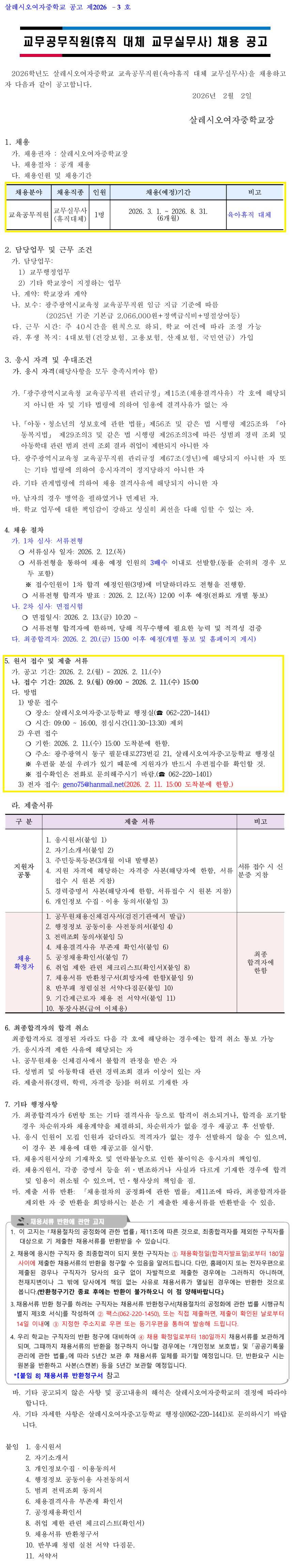 ÇÕ°Ý ÈÄ Ã¤¿ë½Ã, »ì·¹½Ã¿À¿©ÀÚÁßÇб³ ¼Ò¼Ó °è¾àÁ÷À¸·Î ±Ù¹«ÇÏ°Ô µË´Ï´Ù.