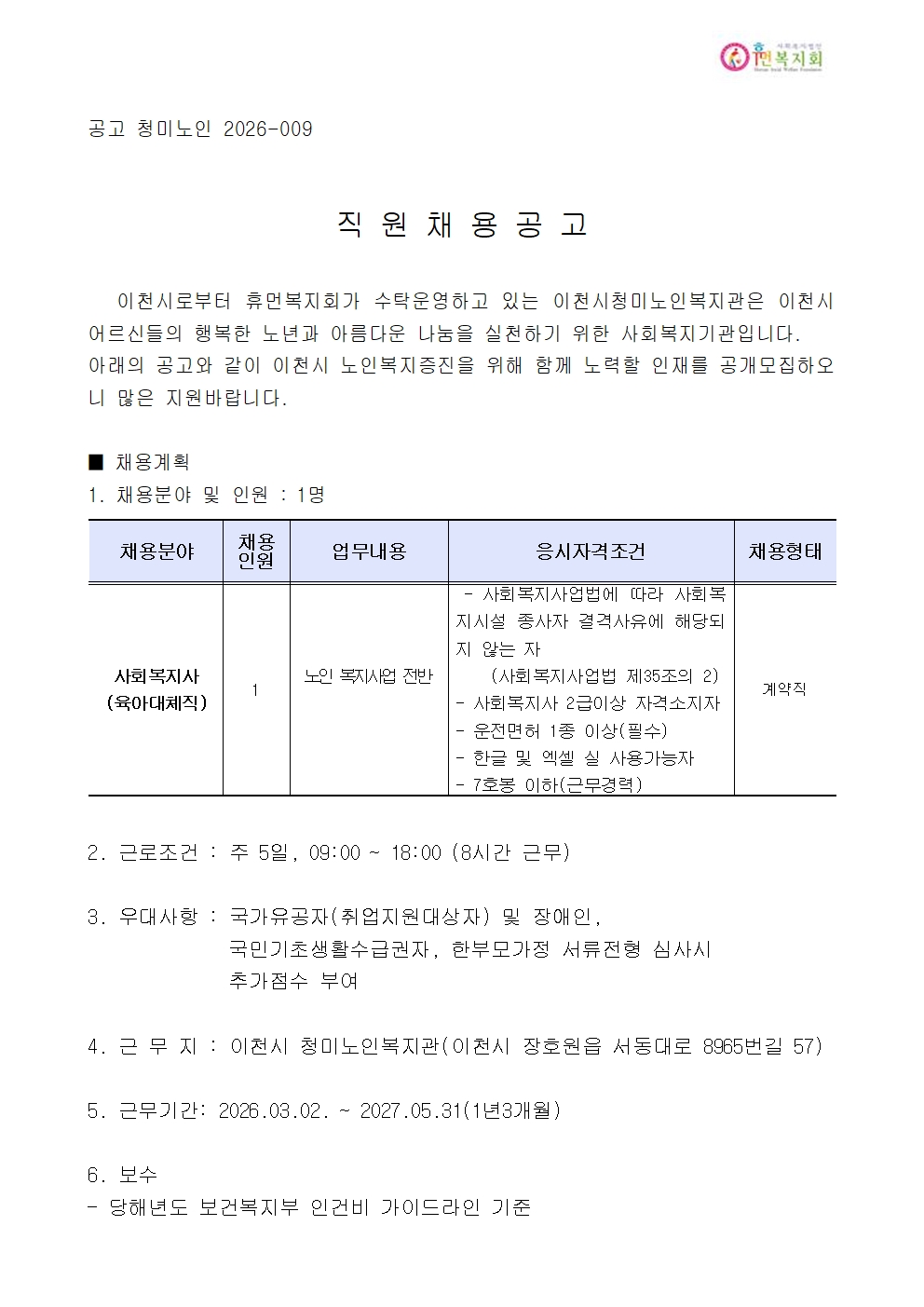[ÀÌõ½Ã û¹Ì³ëÀκ¹Áö°ü] »çȸº¹Áö»ç(À°¾Æ´ëüÁ÷) ä¿ë °ø°í