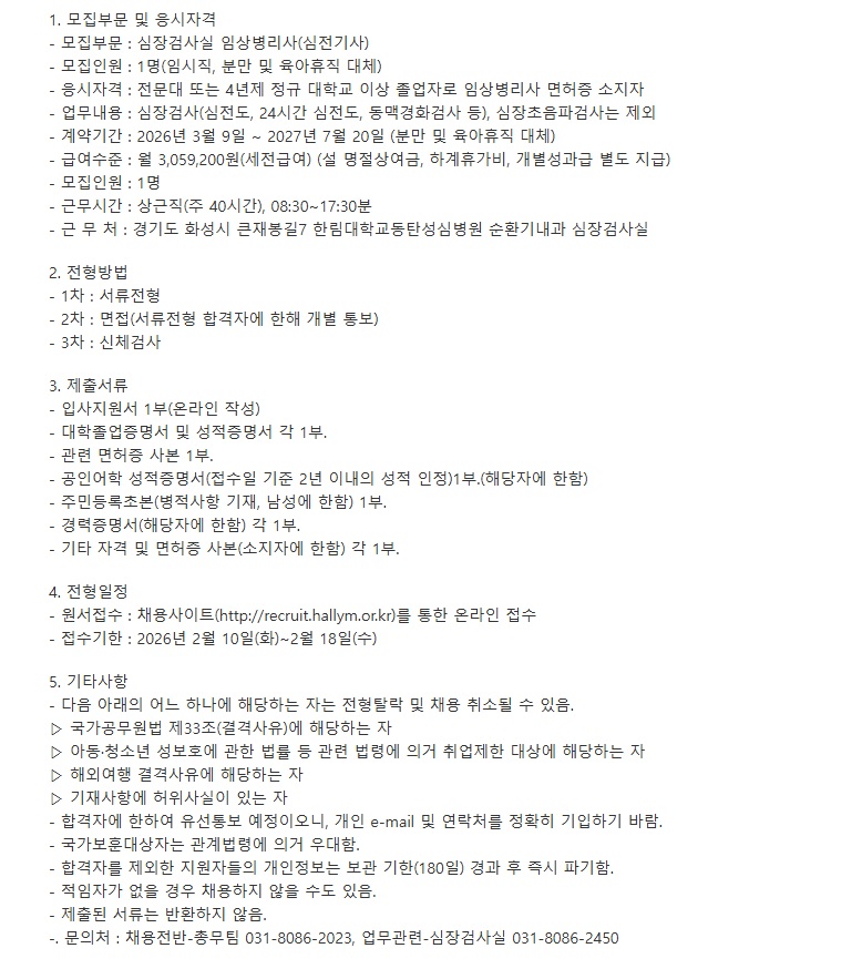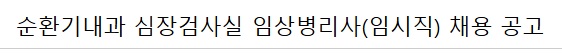[ÇѸ²´ëÇб³ µ¿Åº¼º½Éº´¿ø] ½ÉÀå°Ë»ç½Ç ÀÓ»óº´¸®»ç(ÈÞÁ÷ ´ëü) ä¿ë