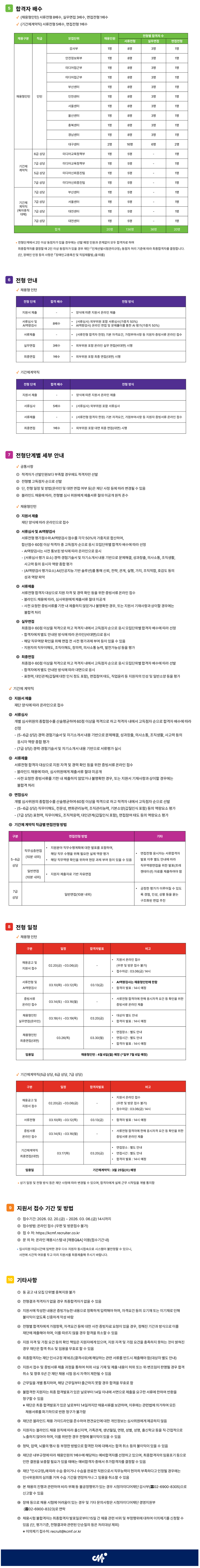 o Á¢¼ö¹æ¹ý: ¿Â¶óÀÎ Á¢¼ö(https://kcmf.recruiter.co.kr) (¿ìÆí ¹× ¹æ¹® Á¢¼ö ºÒ°¡)
