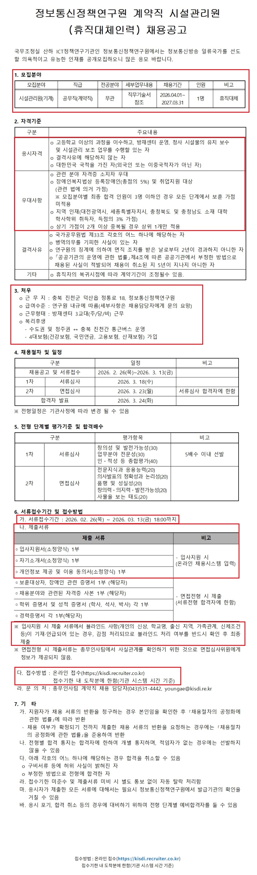 [Á¤º¸Åë½ÅÁ¤Ã¥¿¬±¸¿ø] ½Ã¼³°ü¸®¿ø(ÈÞÁ÷´ëü) ä¿ë°ø°í