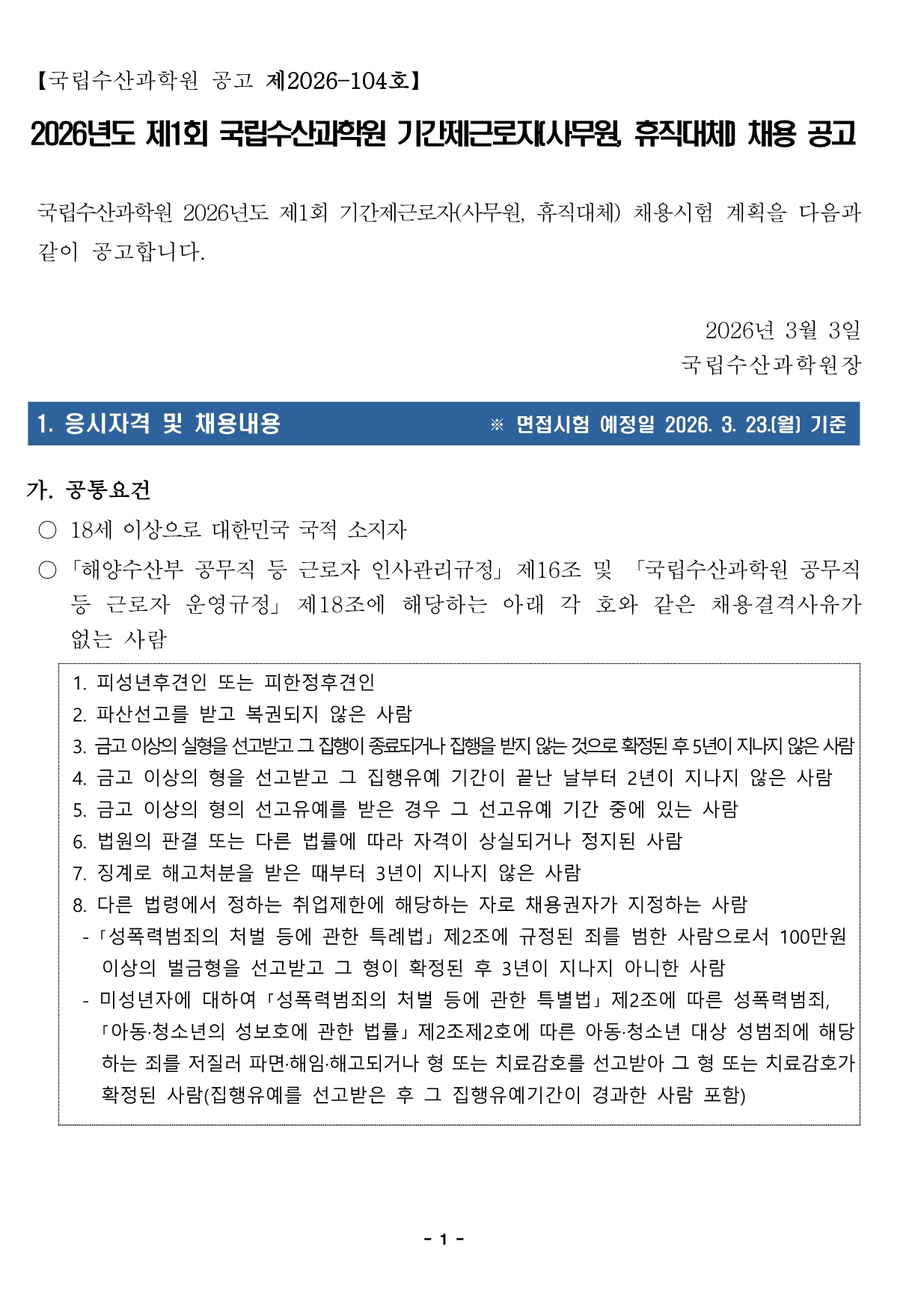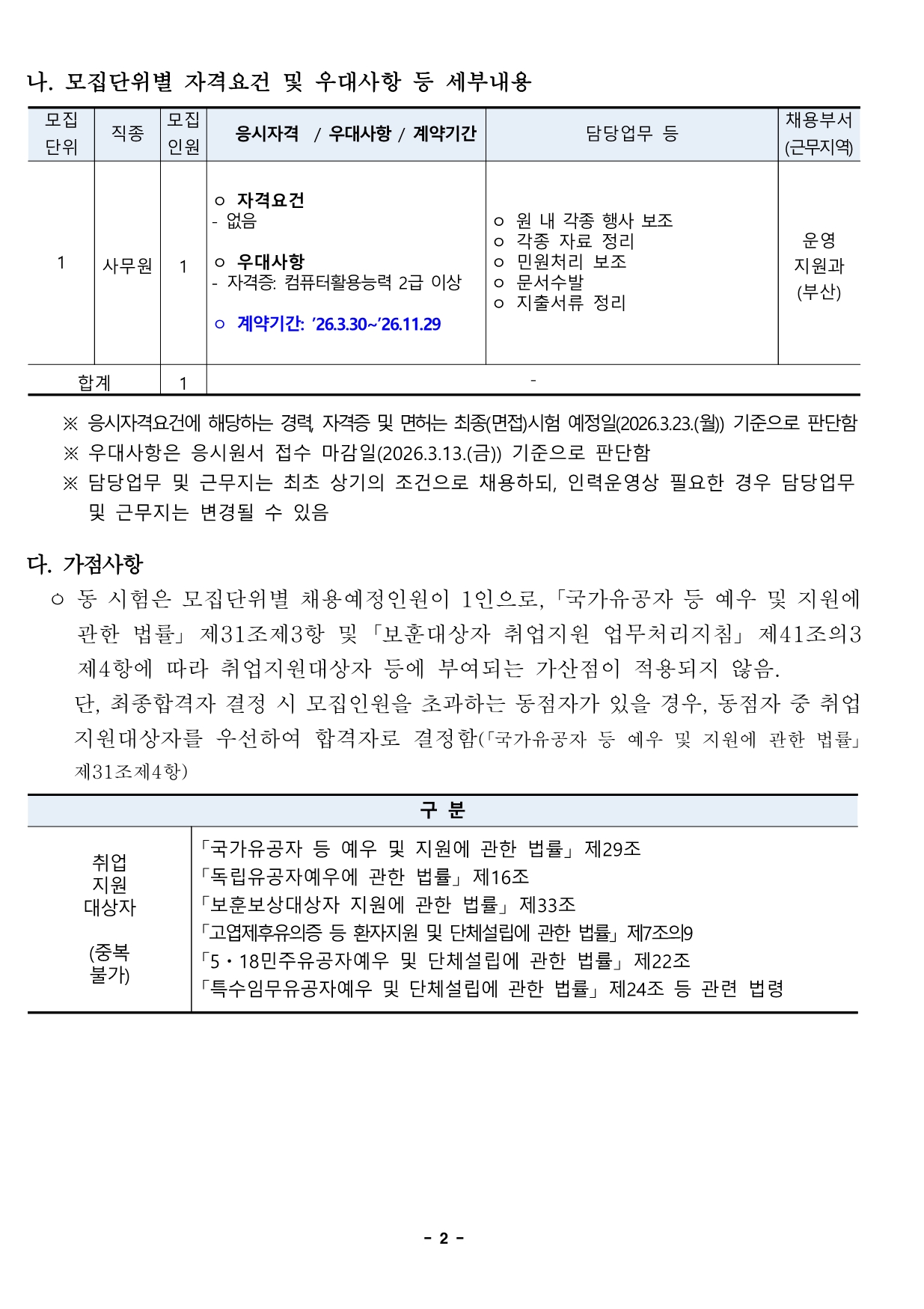 [±¹¸³¼ö»ê°úÇпø] 2026³âµµ ±â°£Á¦ ±Ù·ÎÀÚ(»ç¹«¿ø, ÈÞÁ÷´ëü) ä¿ë °ø°í
