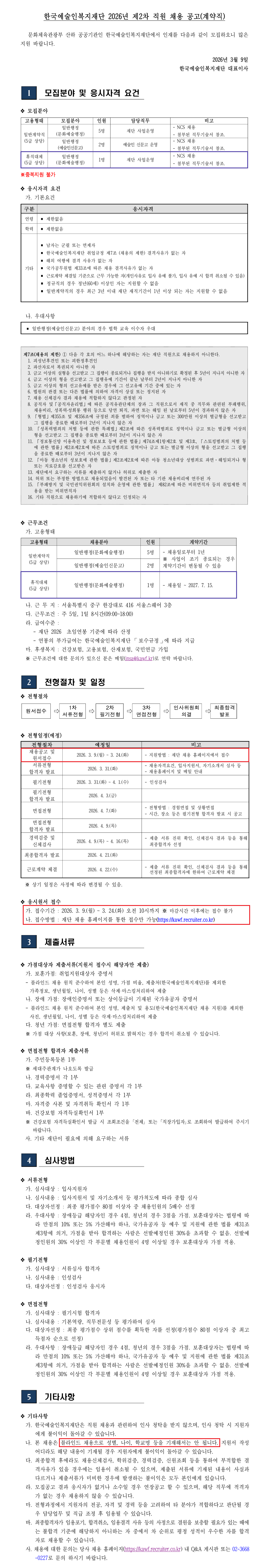 [Çѱ¹¿¹¼úÀκ¹ÁöÀç´Ü] 2026³â Á¦2Â÷ Á÷¿ø ä¿ë °ø°í - ÀϹÝÇàÁ¤(¹®È­¿¹¼úÇàÁ¤/¿¹¼úÀνŹ®°í)