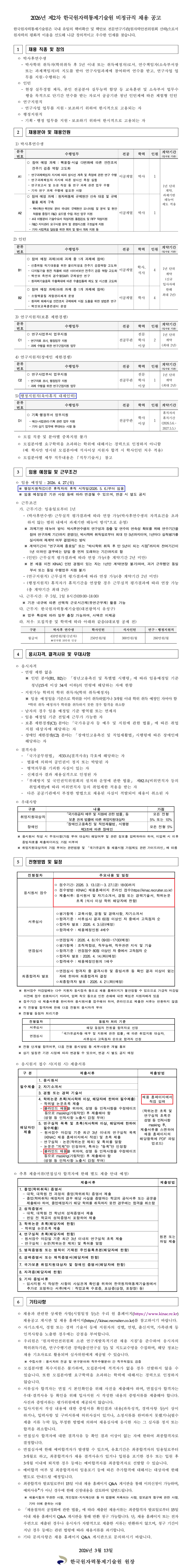 [Çѱ¹¿øÀÚ·ÂÅëÁ¦±â¼ú¿ø] 2026³â Á¦2Â÷ ºñÁ¤±ÔÁ÷ ä¿ë °ø°í