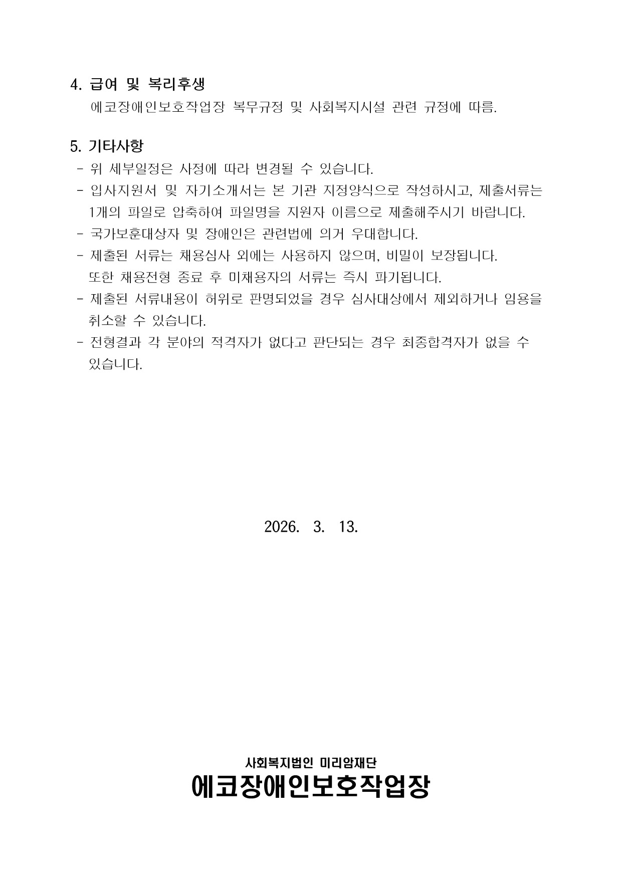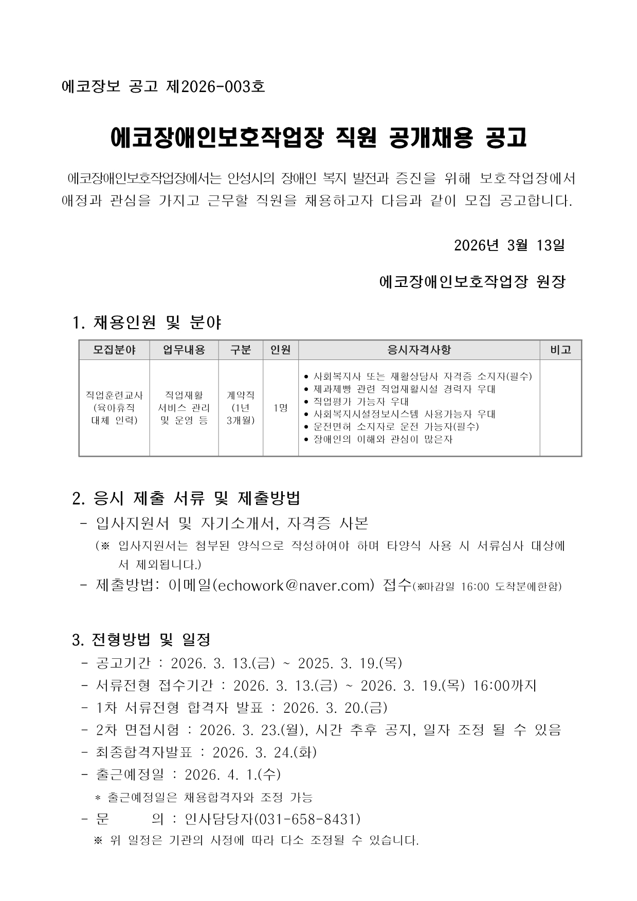 ÇÕ°Ý ÈÄ Ã¤¿ë ½Ã, ¿¡ÄÚÀå¾ÖÀκ¸È£ÀÛ¾÷Àå ¼Ò¼ÓÀ¸·Î ±Ù¹«ÇÏ°Ô µË´Ï´Ù.