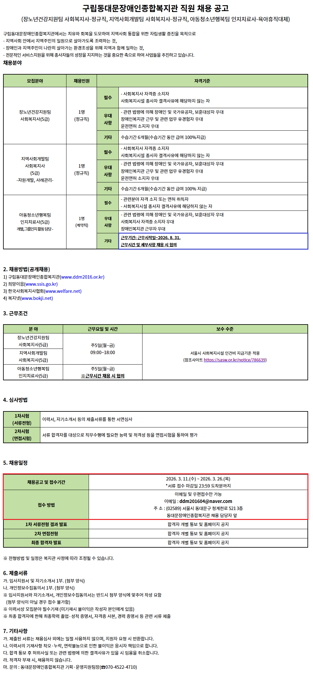 ÇÕ°Ý ÈÄ Ã¤¿ë½Ã, '±¸¸³µ¿´ë¹®Àå¾ÖÀκ¹Áö°ü' ¼Ò¼ÓÀ¸·Î ±Ù¹«ÇÏ°Ô µË´Ï´Ù.