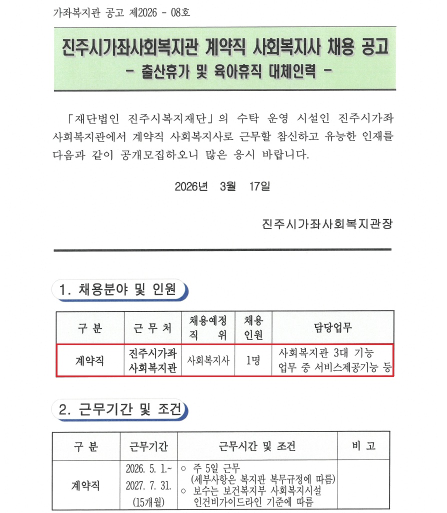 [ÁøÁֽð¡Á»çȸº¹Áö°ü] °è¾àÁ÷ »çȸº¹Áö»ç(Ãâ»ê ¹× À°¾ÆÈÞÁ÷´ëü) ä¿ë °ø°í