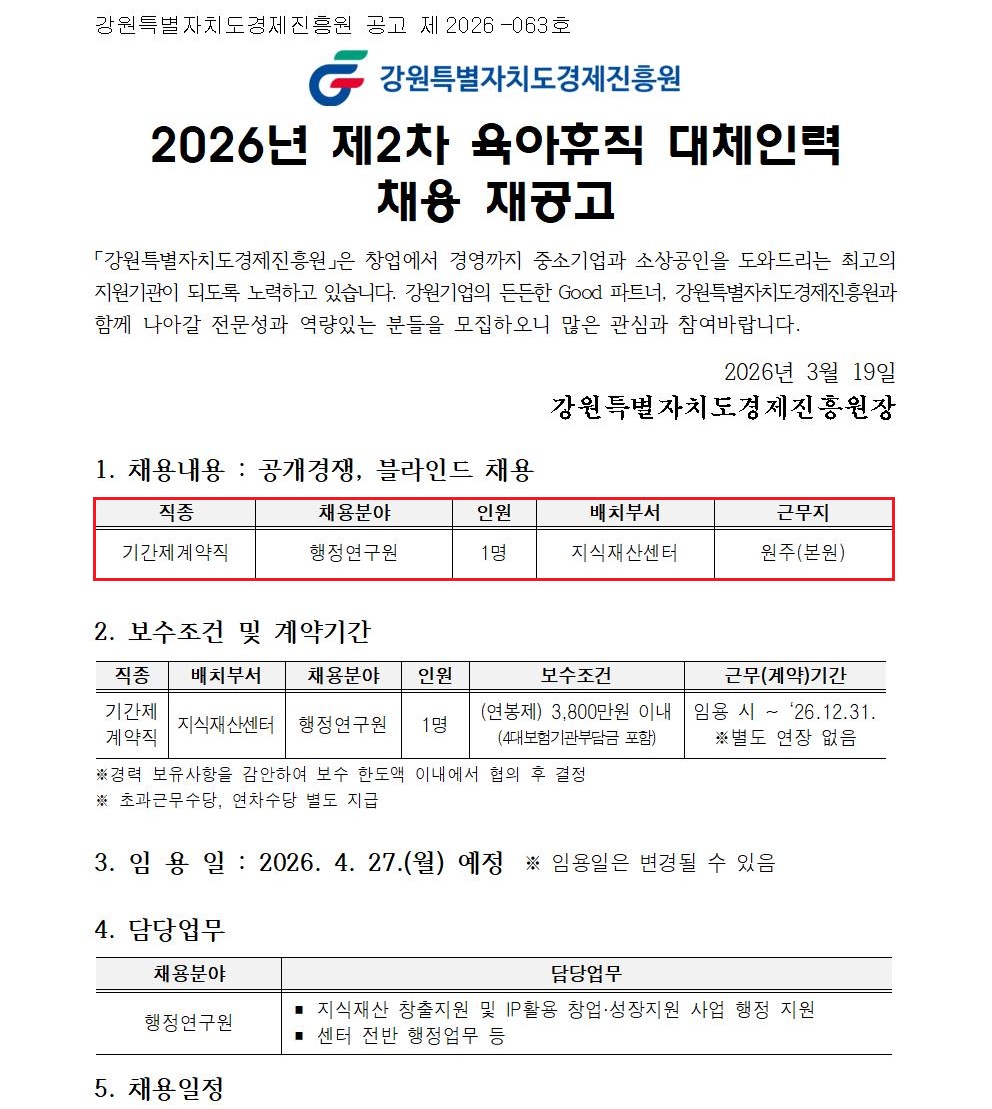 ÇÕ°Ý ÈÄ Ã¤¿ë½Ã, '°¿øÆ¯º°ÀÚÄ¡µµ°æÁ¦ÁøÈï¿ø' ¼Ò¼ÓÀ¸·Î ±Ù¹«ÇÏ°Ô µË´Ï´Ù.