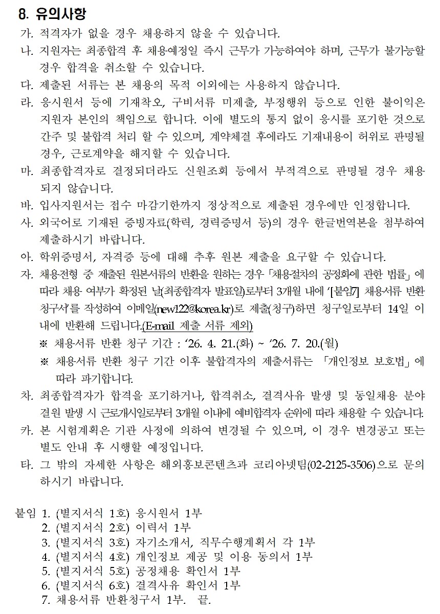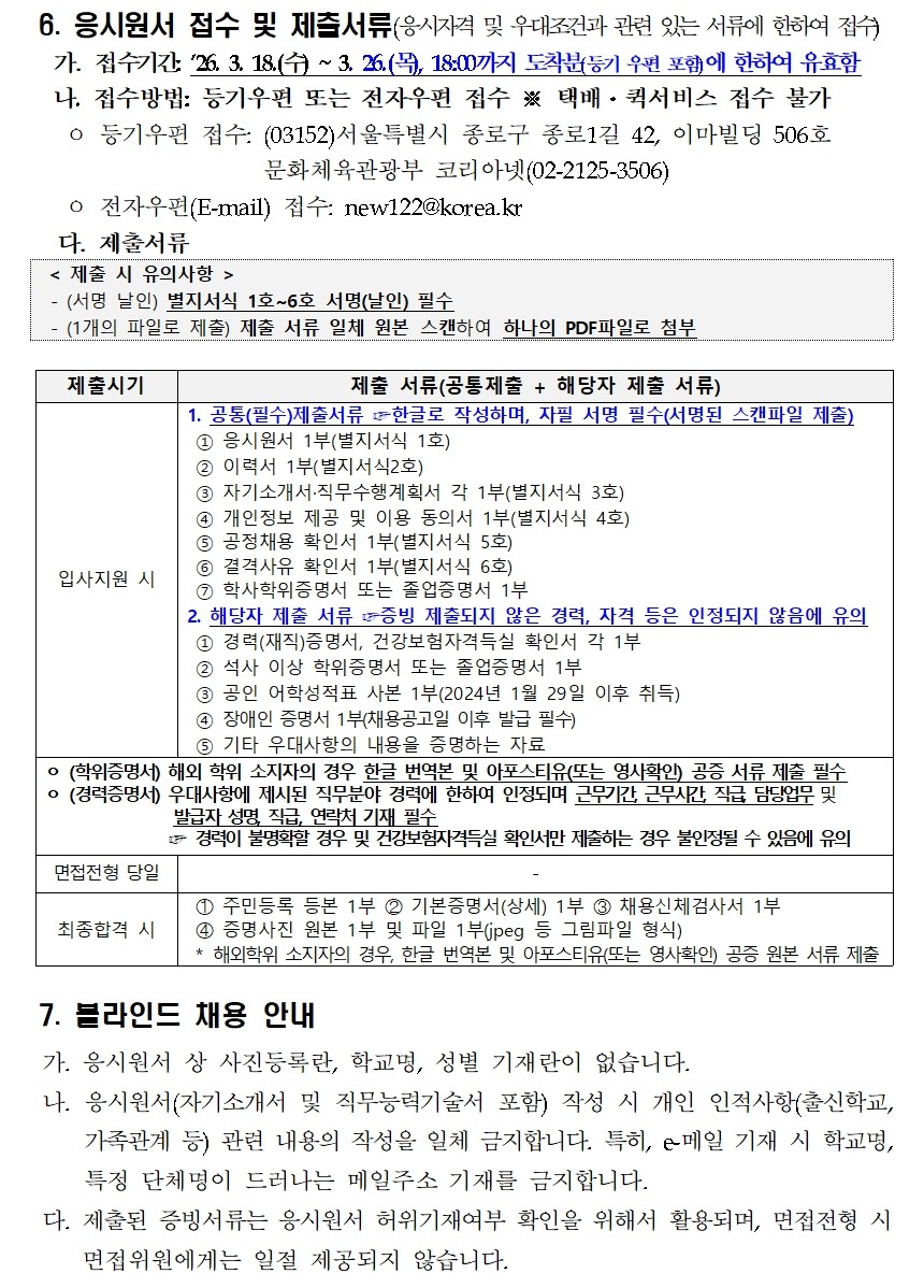 • ¡Ø ÇÕ°Ý ÈÄ Ã¤¿ë½Ã, ¹®È­Ã¼À°°ü±¤ºÎ ÇØ¿ÜÈ«º¸ÄÜÅÙÃ÷°ú ¼Ò¼Ó Á÷¿øÀ¸·Î ±Ù¹«ÇÏ°Ô µË´Ï´Ù.