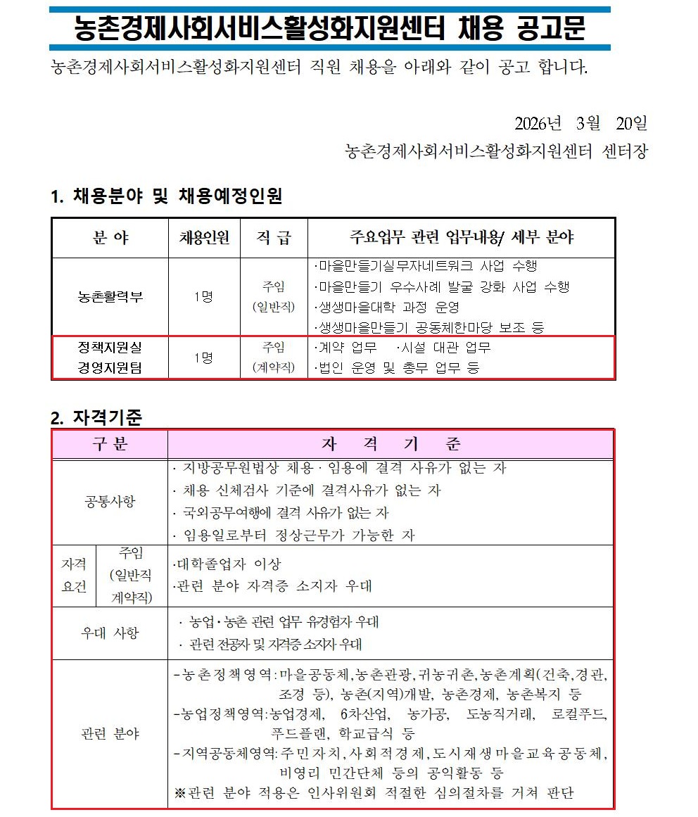 ÇÕ°Ý ÈÄ Ã¤¿ë ½Ã, '(»ç)Áö¿ªÈ°·Â¼¾ÅÍ' ¼Ò¼ÓÀ¸·Î ±Ù¹«ÇÏ°Ô µË´Ï´Ù.