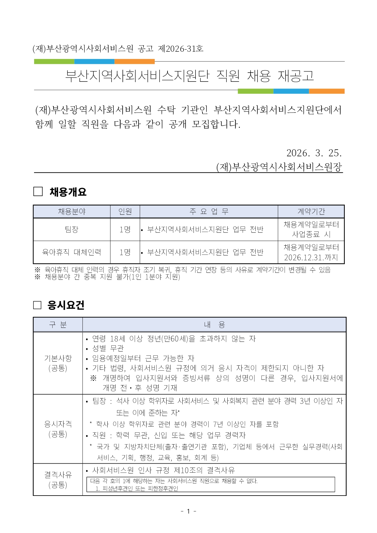 [ºÎ»êÁö¿ª»çȸ¼­ºñ½ºÁö¿ø´Ü] ºÎ»êÁö¿ª»çȸ¼­ºñ½ºÁö¿ø´Ü Á÷¿ø ä¿ë Àç°ø°í