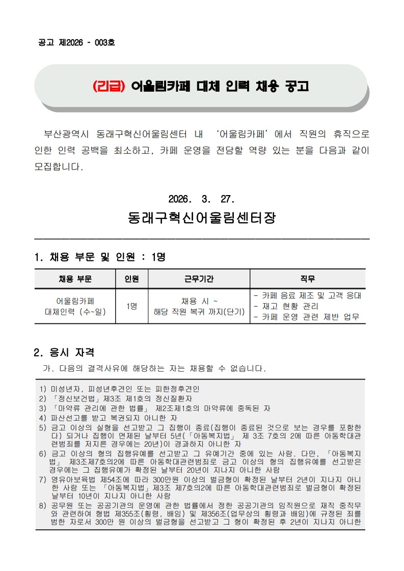 [ºÎ»ê µ¿·¡±¸]¾î¿ï¸²Ä«Æä ¹Ù¸®½ºÅ¸ ´ëüÀηÂä¿ë