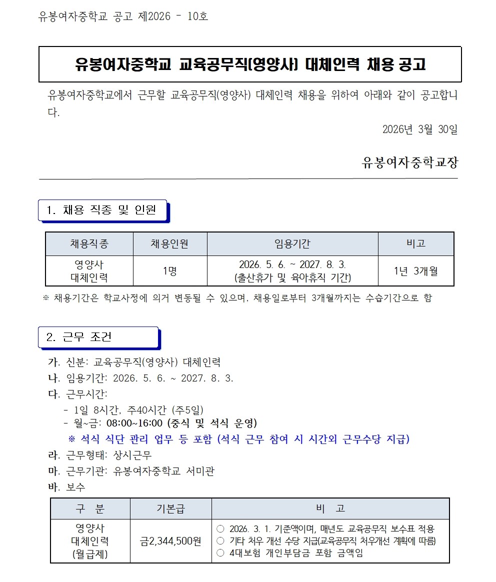 ±³À°°ø¹«Á÷(¿µ¾ç»ç) ä¿ë °ø°í (Ãâ»êÈÞ°¡ ¹× À°¾ÆÈÞÁ÷ ´ëü)