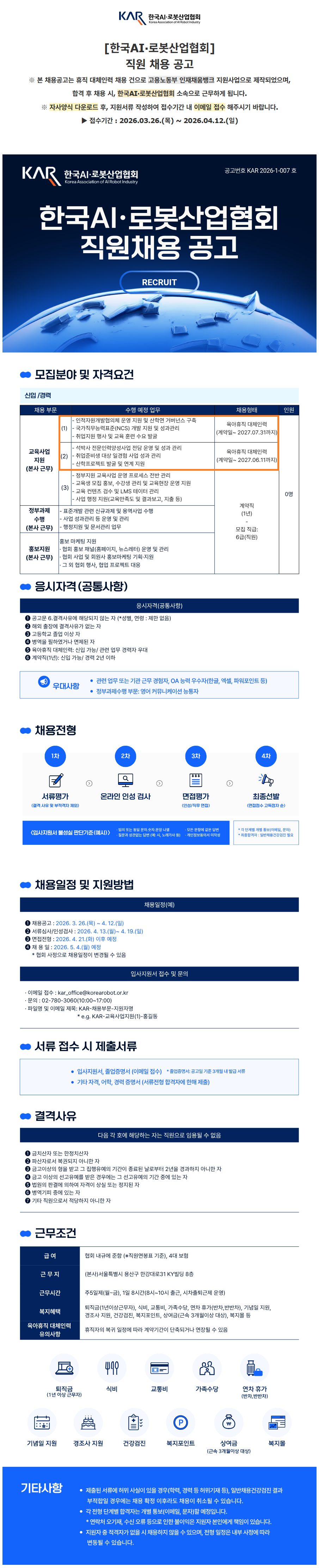 [Çѱ¹AI¡¤·Îº¿»ê¾÷Çùȸ] Á÷¿ø ä¿ë °ø°í