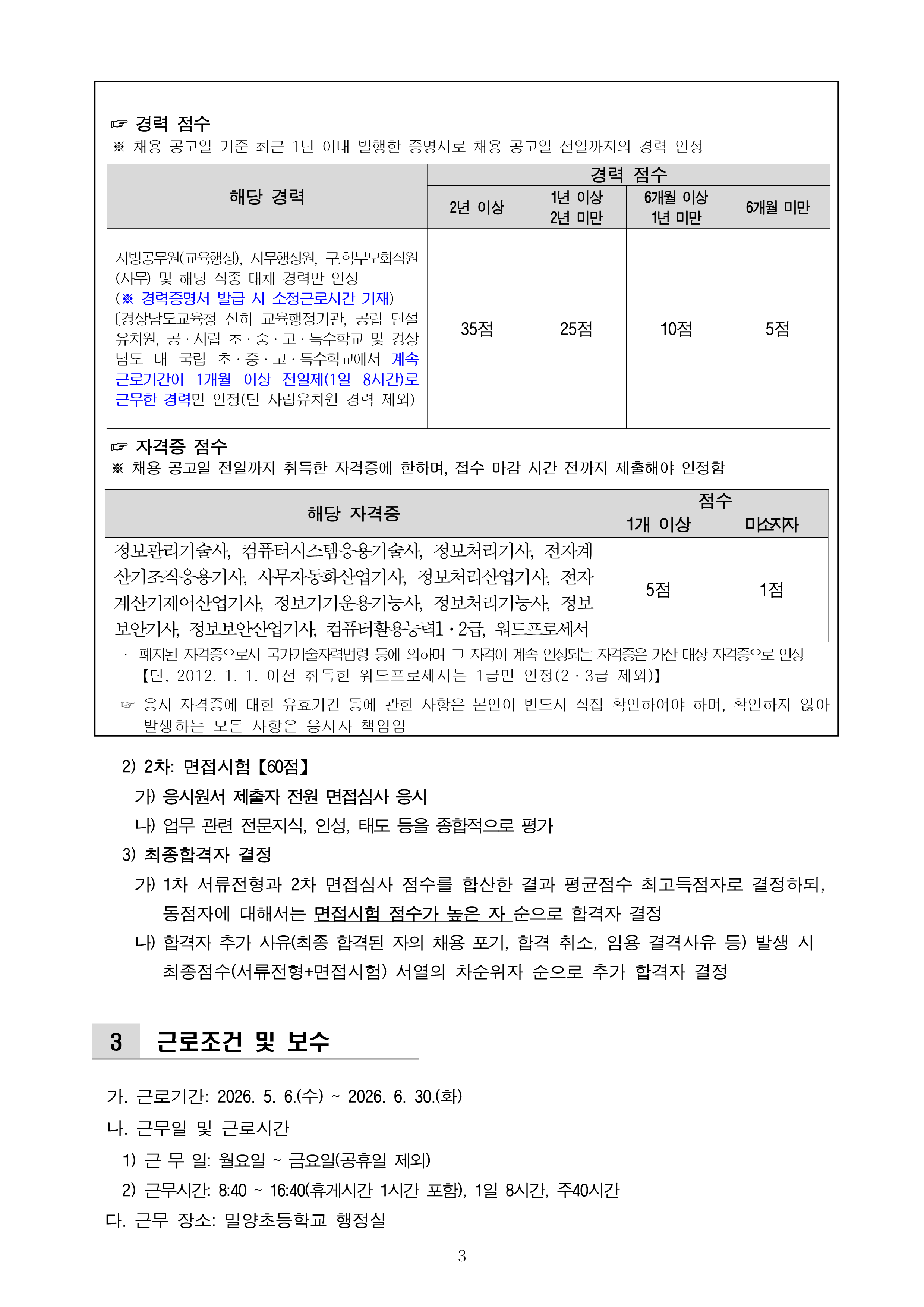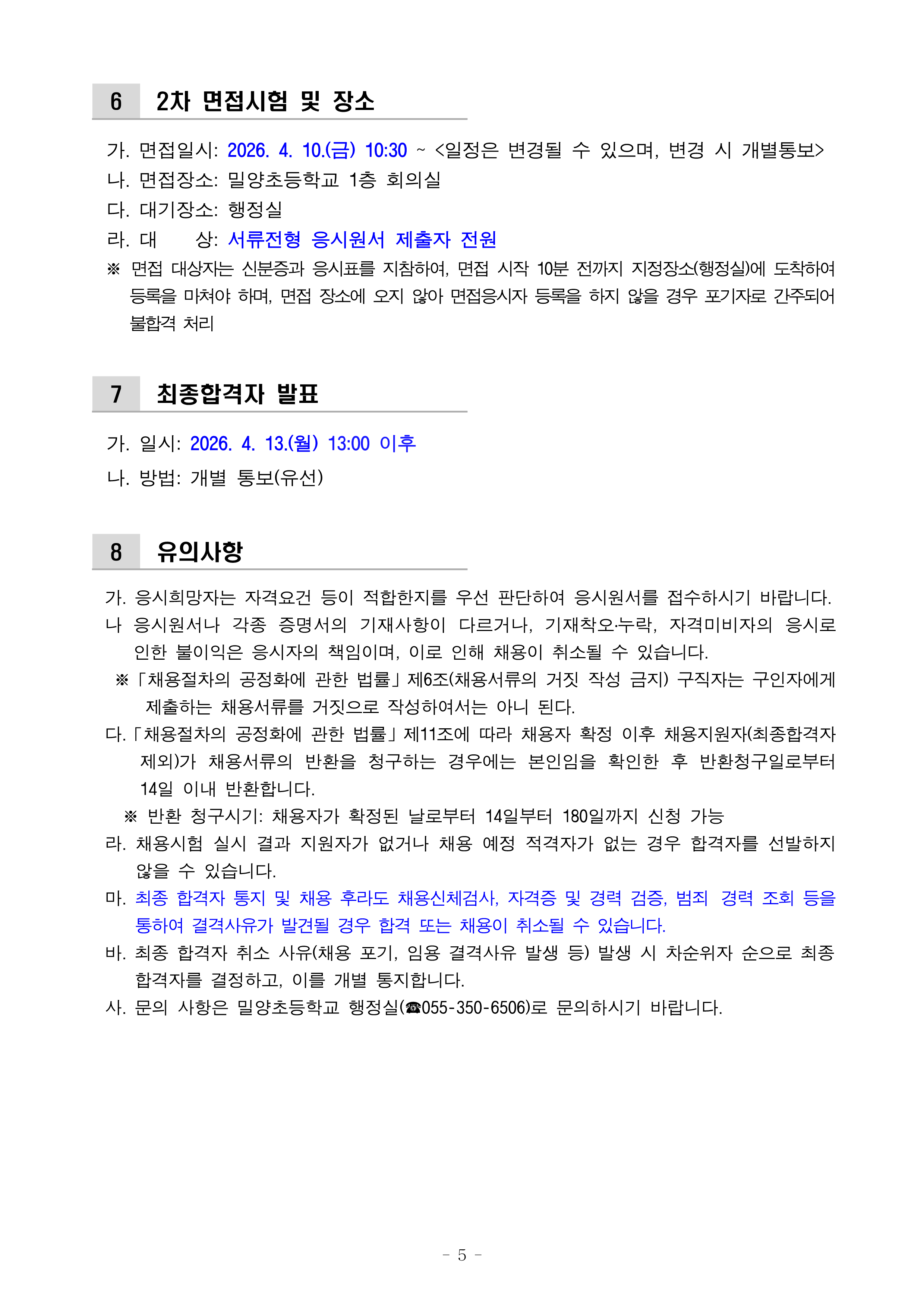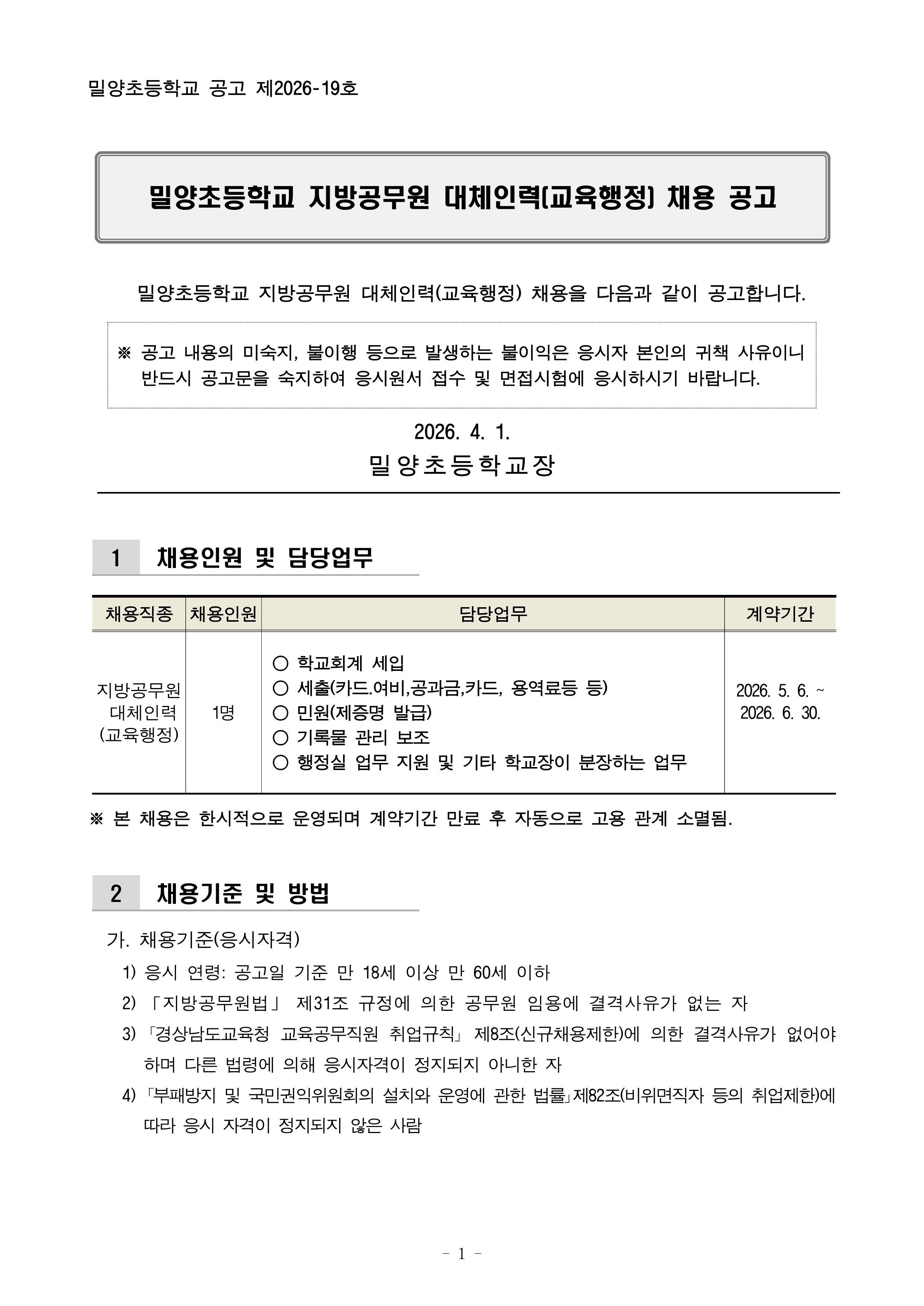 [ °æ³² ¹Ð¾ç] ¹Ð¾çÃʵîÇб³ Áö¹æ°ø¹«¿ø ´ëüÀηÂ(±³À°ÇàÁ¤) ä¿ë°ø°í
