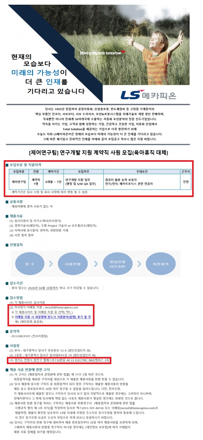 [LS¸ÞÄ«ÇÇ¿Â] ¿¬±¸°³¹ßÁö¿ø °è¾àÁ÷ »ç¿ø ¸ðÁý (À°¾ÆÈÞÁ÷ ´ëü)