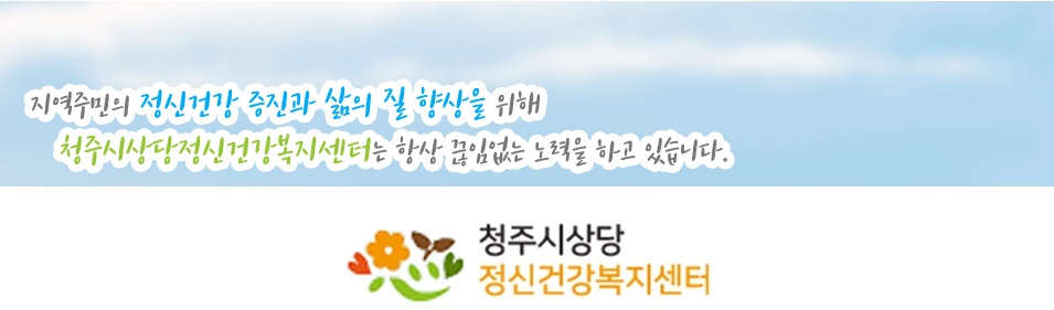 ÃæºÏ´ëÇб³º´¿ø¿¡¼­ À§Å¹¿î¿µÇϰí Àִ ûÁֽûó´çÁ¤½Å°Ç°­º¹Áö¼¾ÅÍ¿¡¼­´Â Áö¿ª ÁÖ¹ÎÀÇ Á¤½Å°Ç°­ÁõÁø°ú Á¤½ÅÀå¾ÖÀÎÀÇ »çȸÅëÇÕ ¹× »îÀÇ Áú Çâ»óÀ» À§ÇØ Á¤½Å°Ç°­ ÁõÁø¼­ºñ½º¸¦ Á¦°øÇϰí ÀÖ½À´Ï´Ù. º» ¼¾ÅÍ ÈÞÁ÷ÀÚ ¹ß»ýÀ¸·Î ÀÏÁ¤±â°£ µ¿¾È ÇÔ²² ÇÒ ÀηÂÀ» °ø°³ ¸ðÁýÇÕ´Ï´Ù.