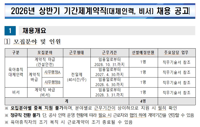 [¿ï»êÇ׸¸°ø»ç] »ó¹Ý±â ±â°£Á¦°è¾àÁ÷(´ëüÀηÂ) ä¿ë °ø°í