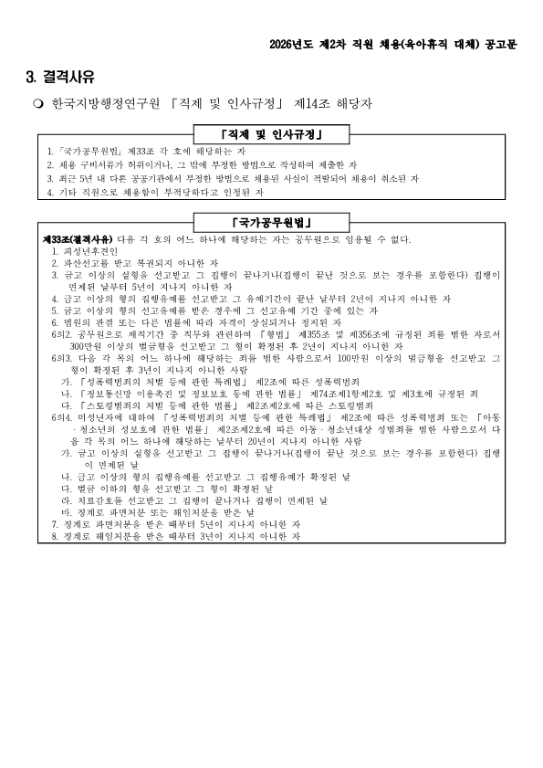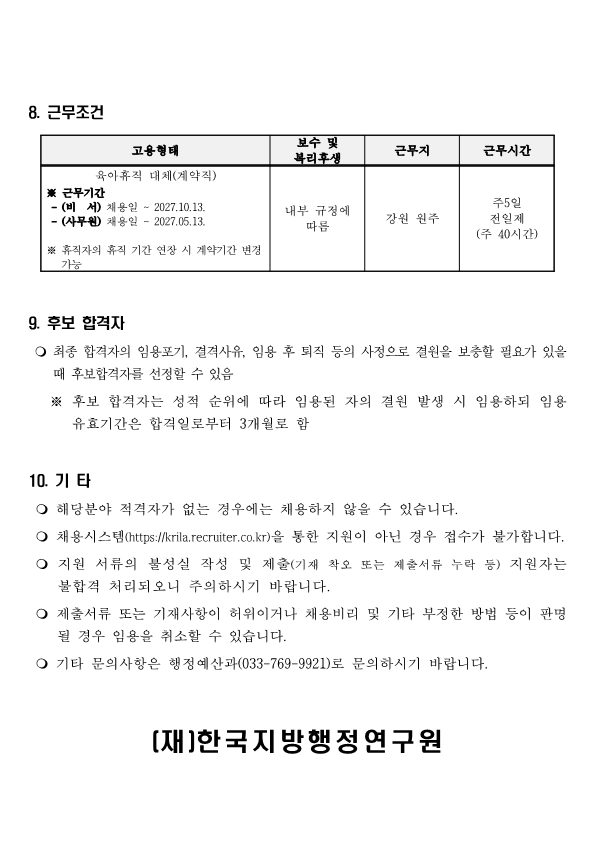 ÇÕ°Ý ÈÄ Ã¤¿ë½Ã 'Çѱ¹Áö¹æÇàÁ¤¿¬±¸¿ø' ¼Ò¼ÓÀ¸·Î ±Ù¹«ÇÏ°Ô µË´Ï´Ù.