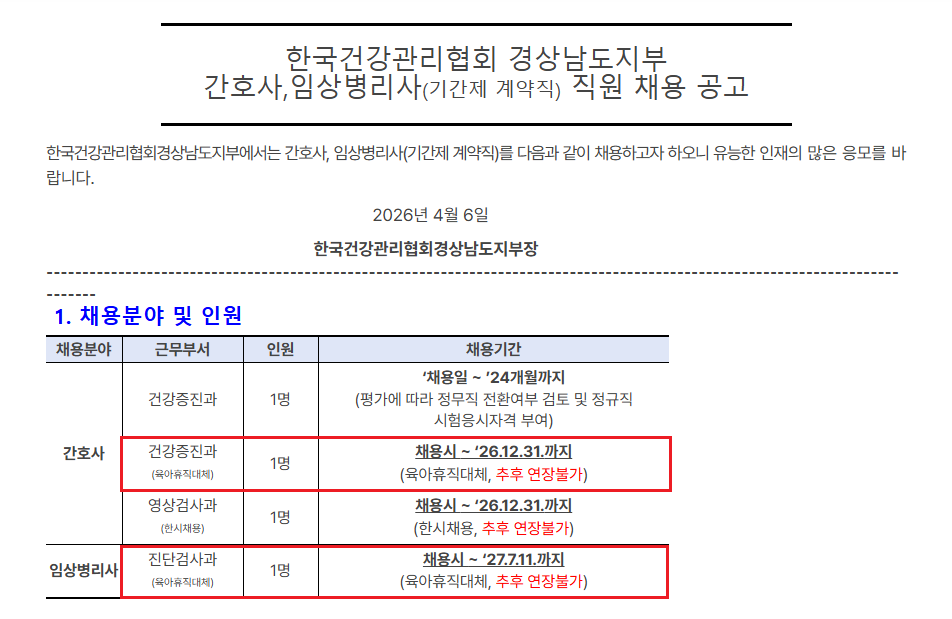 [(»ç)Çѱ¹°Ç°­°ü¸®Çùȸ°æ»ó³²µµÁöºÎ]°£È£»ç,ÀÓ»óº´¸®»ç °è¾àÁ÷(À°¾ÆÈÞÁ÷´ëü) ä¿ë °ø°í