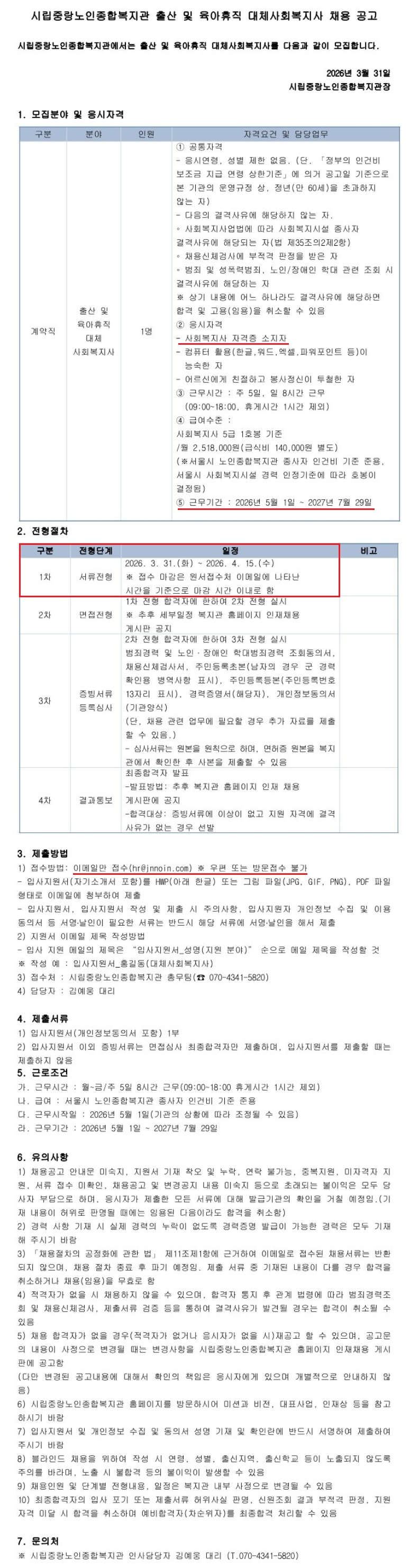 [½Ã¸³Áß¶û³ëÀÎÁ¾ÇÕº¹Áö°ü] Ãâ»ê ¹× À°¾ÆÈÞÁ÷ ´ëü»çȸº¹Áö»ç ä¿ë °ø°í